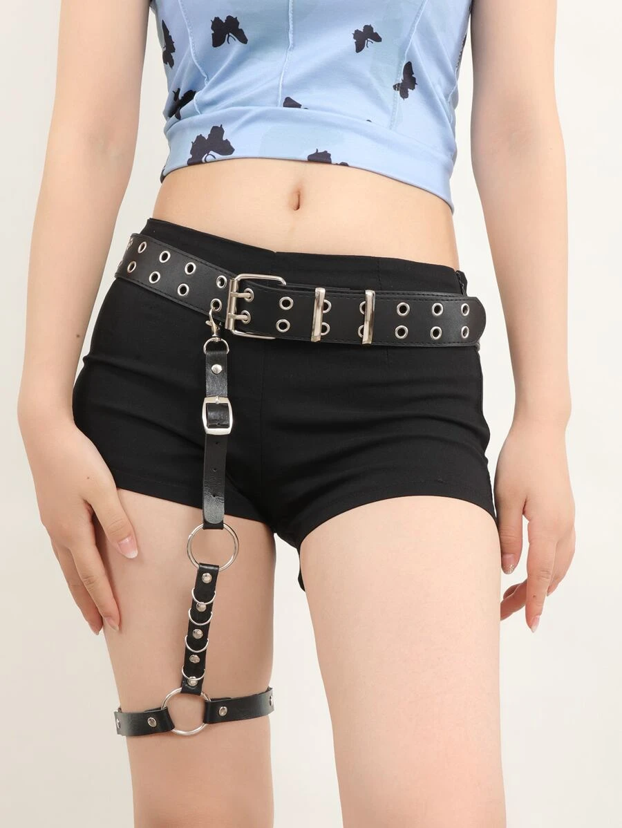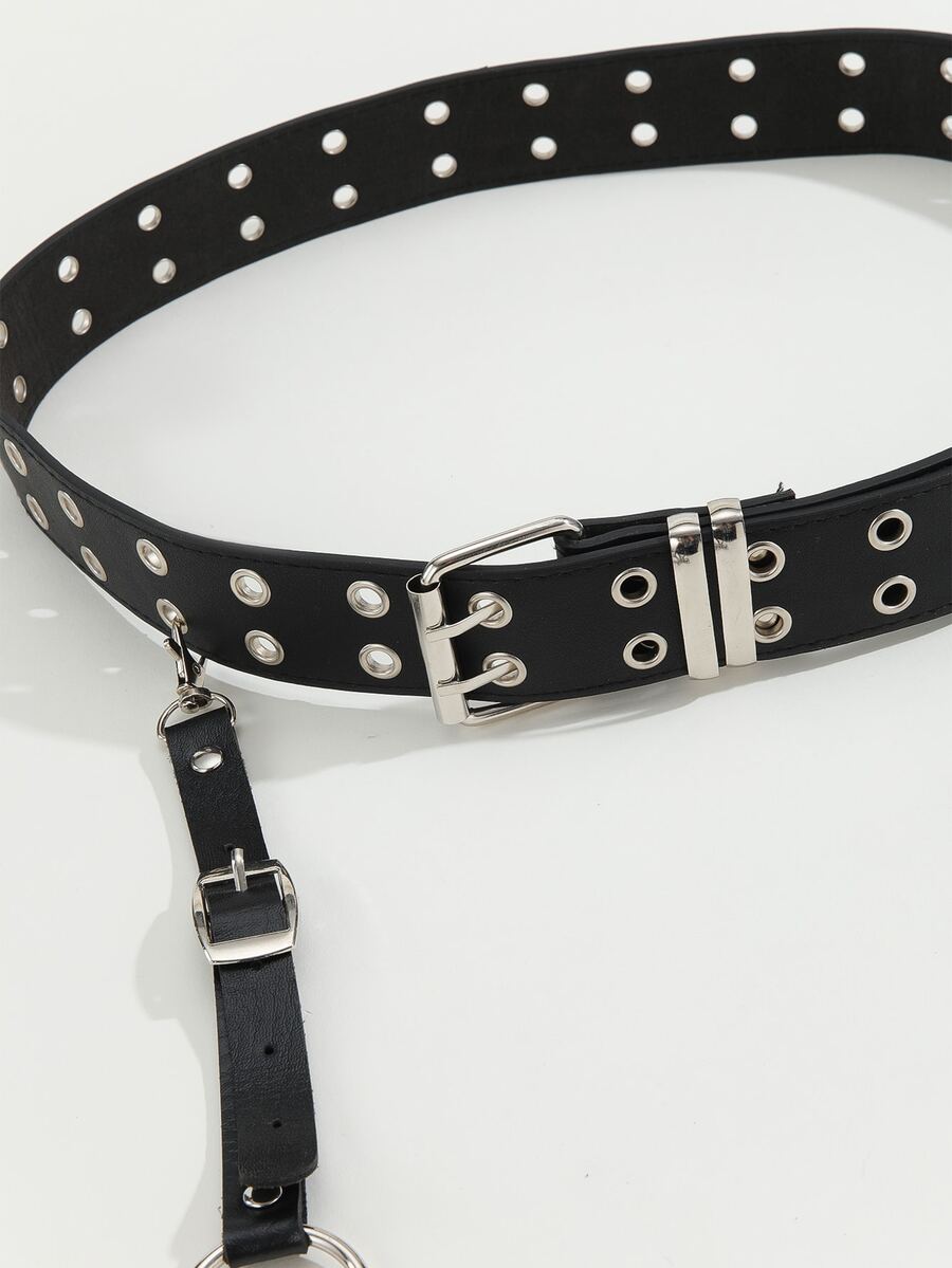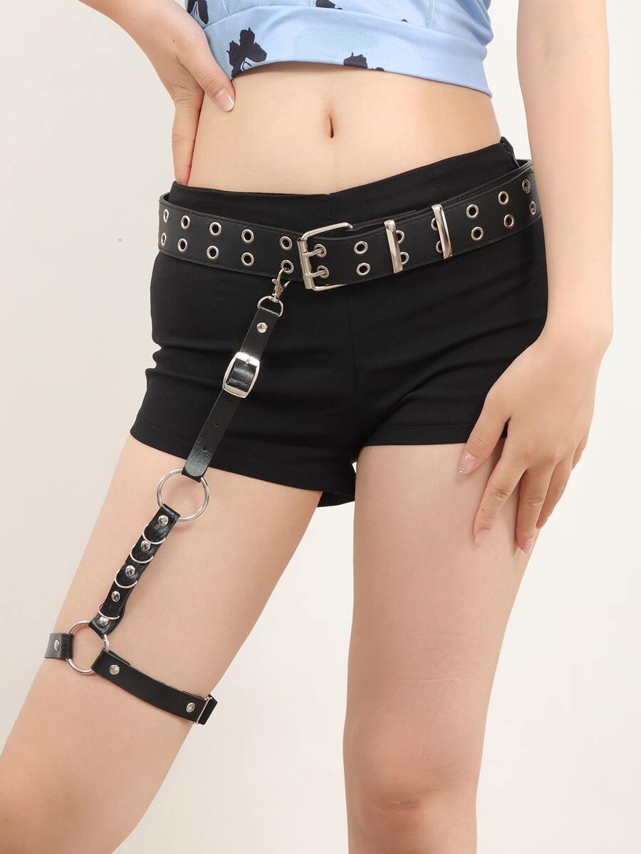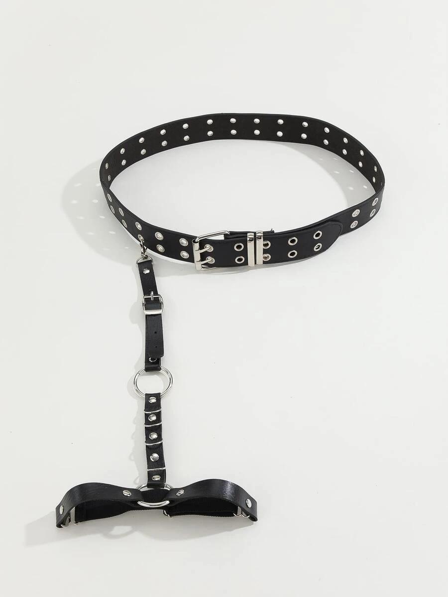 2pcs O-ring & Studded Decor Harness Belt