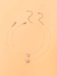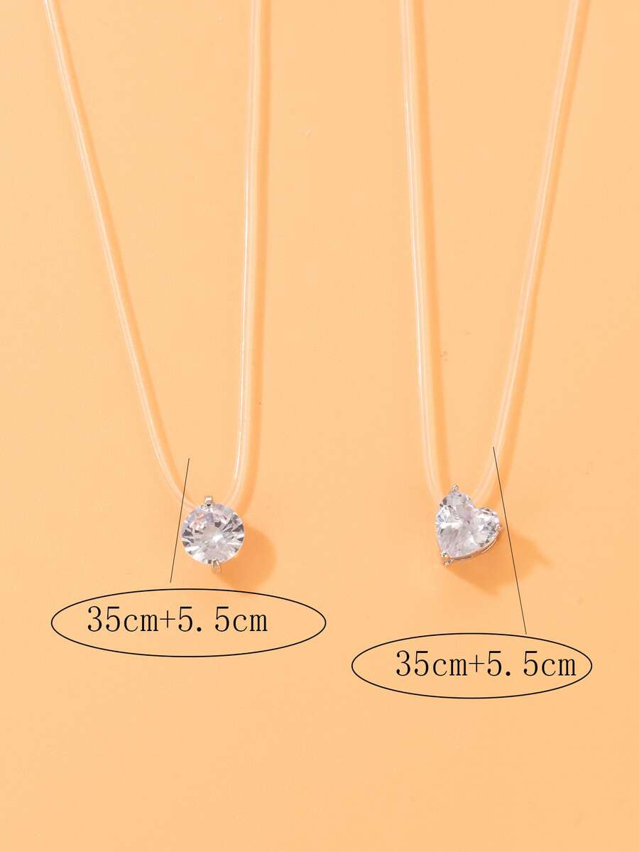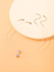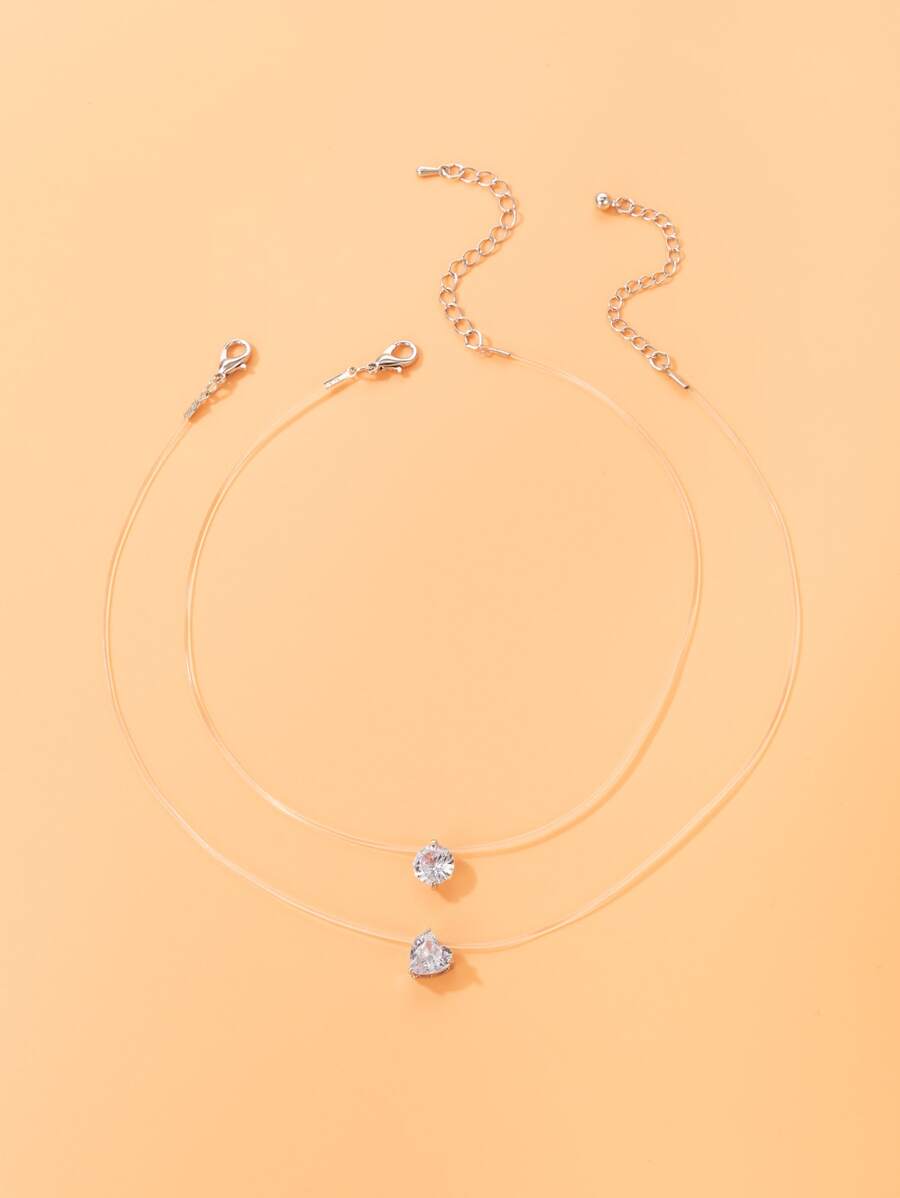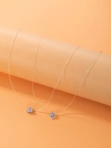 2pcs Rhinestone Heart Charm Necklace
