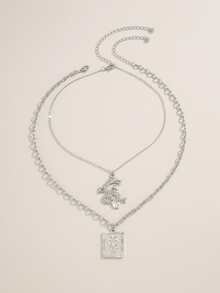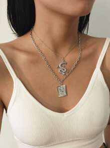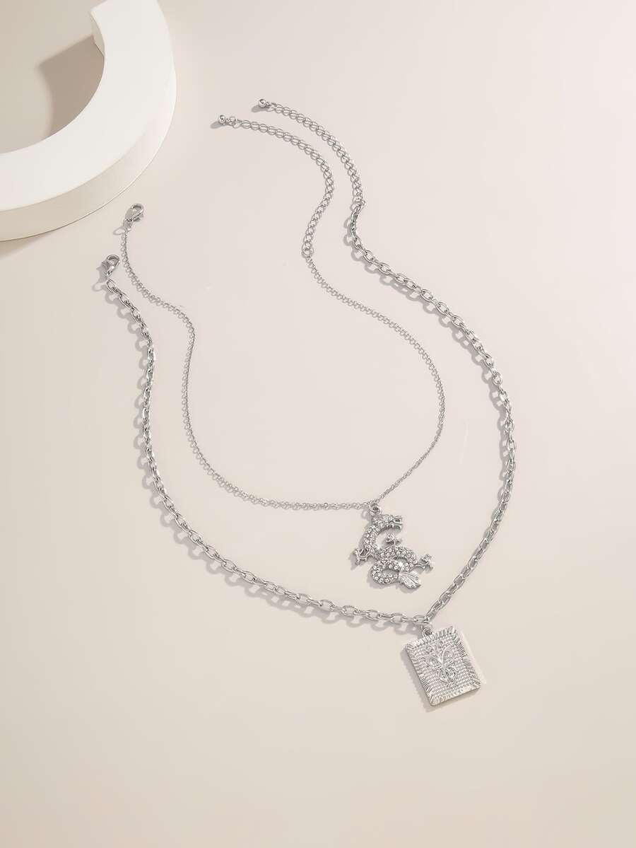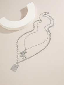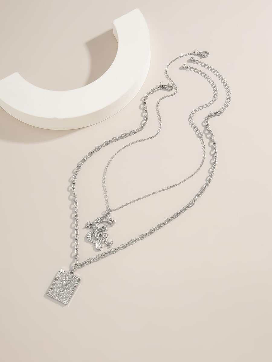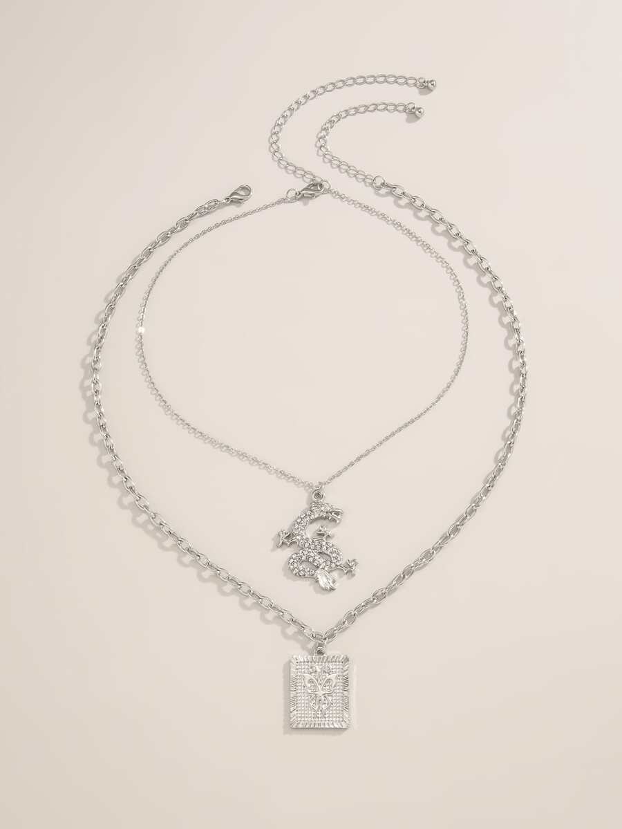 2pcs Textured Metal & Chinese Dragon Pendant Necklace