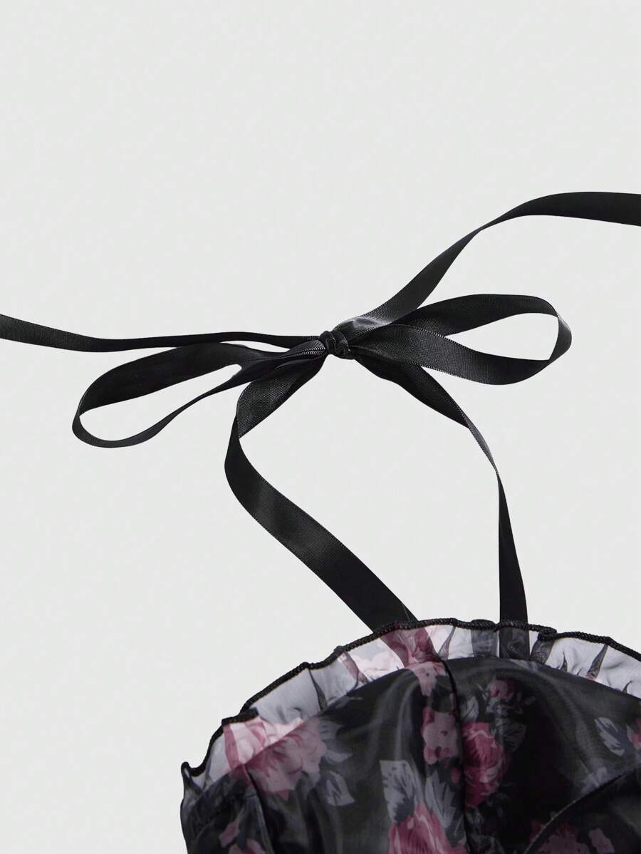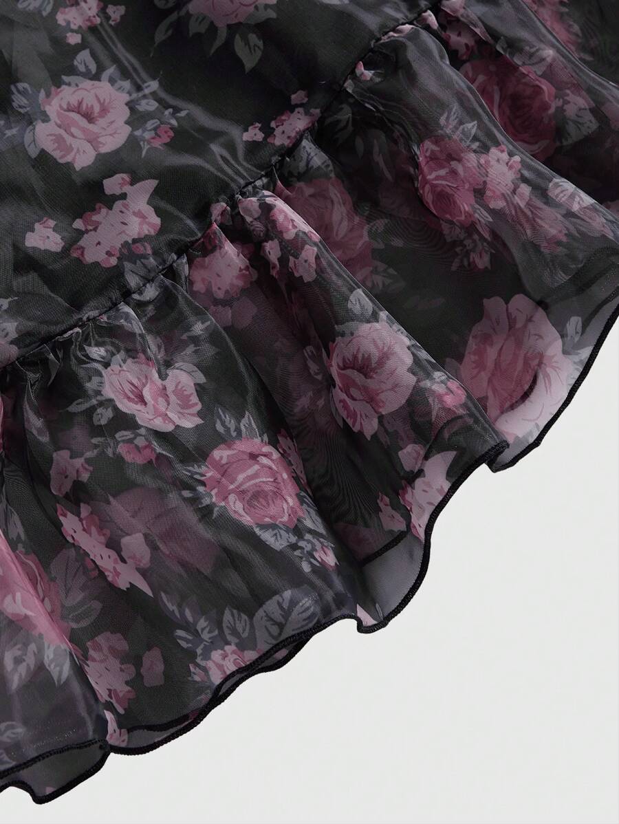 2pcs Women's Vintage Palace Style Elegant Romantic Rose Print Layered Cake Skirt Set