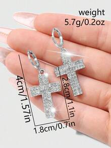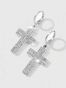 Goth 2pcs Y2K Retro Punk Gothic Style Silver Rhinestone Cross DIY Earrings Set, Fashionable Combination Suitable For Women, Daily Wear Or Gift