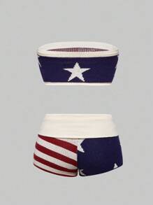 ROMWE Avant 2pcs Y2K Vintage Crop Top & Shorts Set For Women