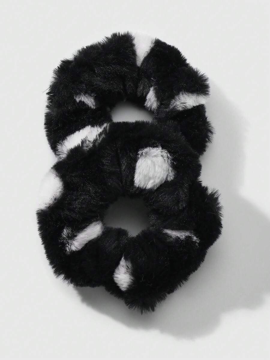 Kawaii 2pcs/Set Chic Vintage Leopard Print Fluffy Scrunchies, Korean Style & Sophisticated, Suitable For Women Daily Wear, Holiday Gift Hair Ties Ponytail Holders Hair Elastics Hair Rope