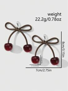Kawaii 2pcs/Set Cute Sweet Bowknot Resin Cherry Pendants, Versatile Simple Elegant Brown Leather Rope Charms For DIY Shoes Decorations, Suitable For Women Girls Daily Wear, Holiday Gift