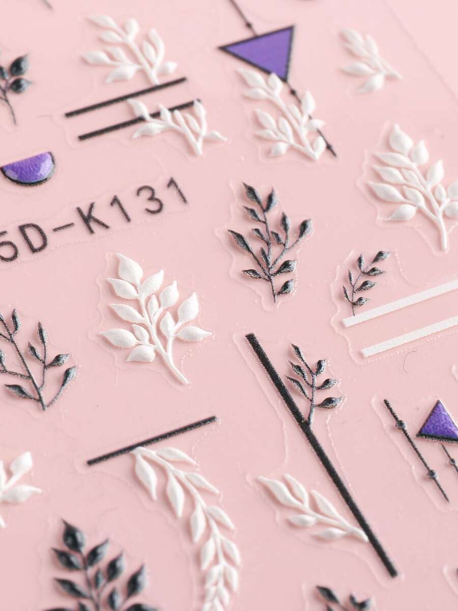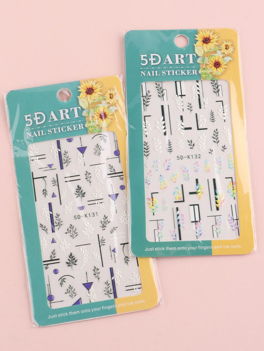 2sheets Embossed Geometric Leaf Pattern Nail Art Sticker