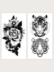 2sheets Floral & Tiger Tattoo Sticker
