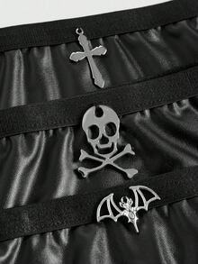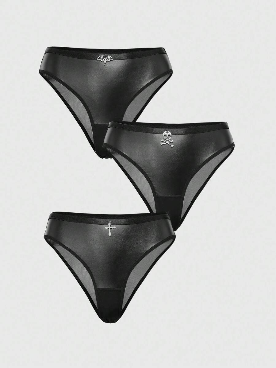 Grunge Punk 3-Pack Gothic Punk PU Fabric Skull, Cross, Spider Decor Briefs Set