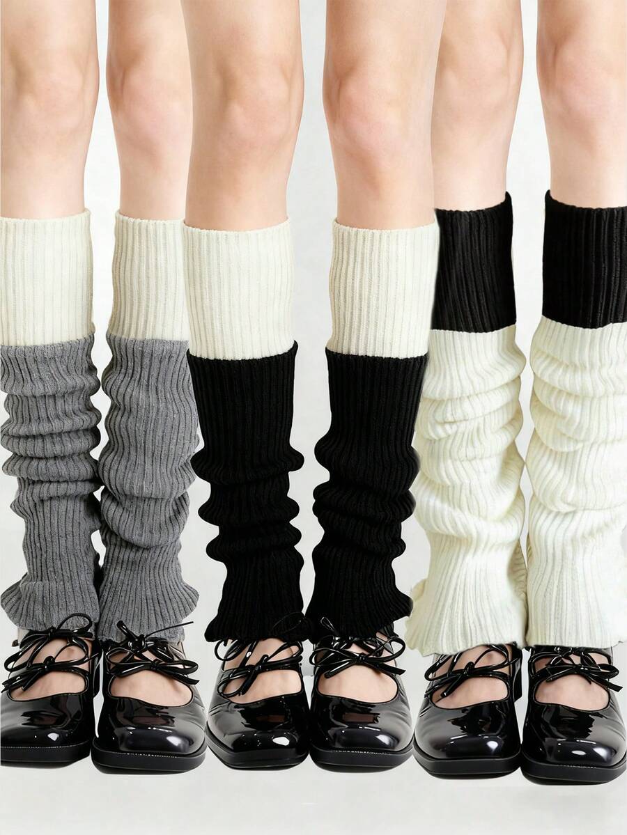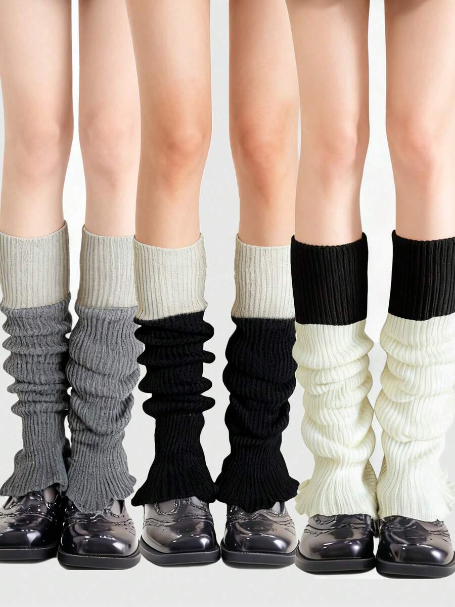 Kawaii 3 Pairs Random Color Knitted Leg Warmers, Punk Minimalist Style In Pink, Red, Burgundy Solid Colors, High Quality Leg Warmers, JK School Style Leg Warmers, Casual Daily Versatile Knitted Leg Warmers