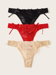3pack Floral Lace Thong Panty Set