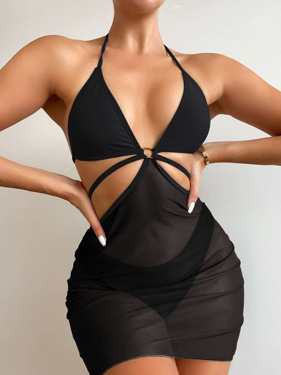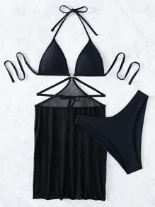 3pack Halter Triangle Bikini Swimsuit & Beach Skirt