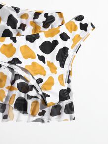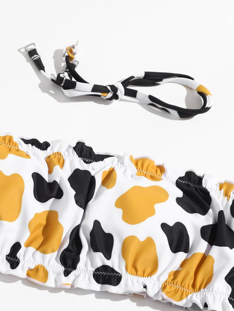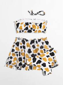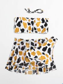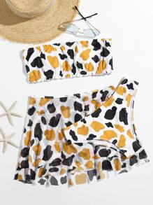 3packs Cow Print Bikini Set & Mesh Skirt
