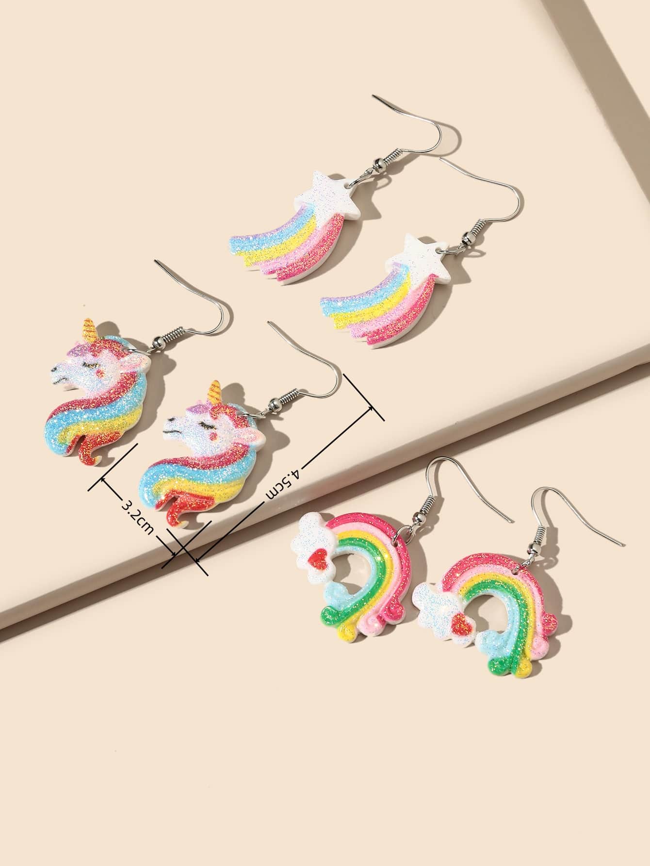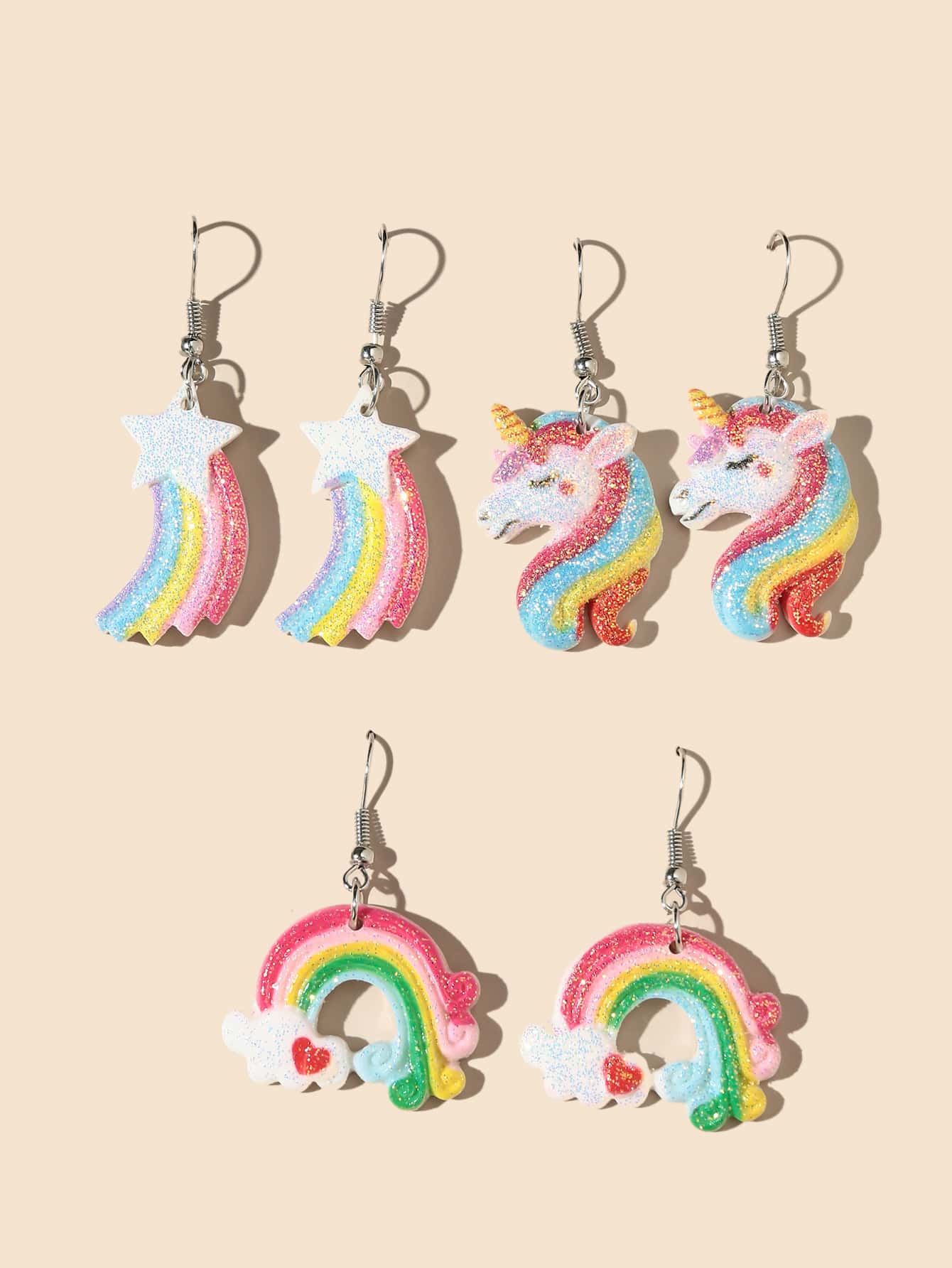 3pairs/set Rainbow & Unicorn Drop Earrings