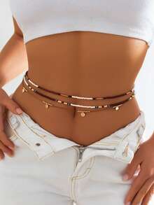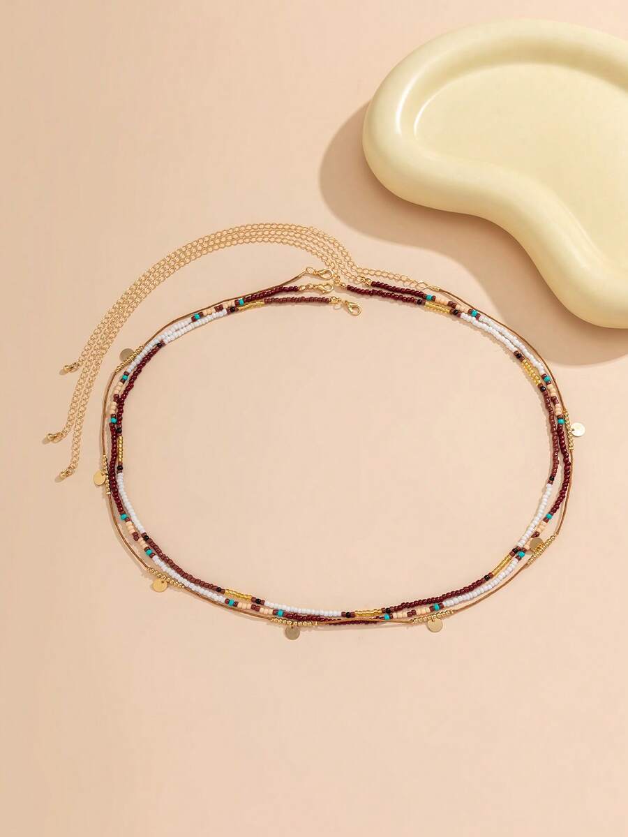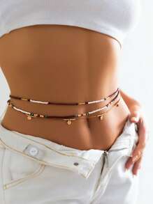 3pcs Bohemian Plastic Round Beaded Waist Chain For Women For Daily Decoration