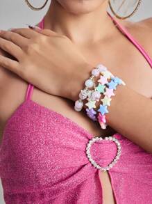 Anime 3pcs Elegant Starry Imitation Crystal Tassel Butterfly Beaded Women Bracelet, Suitable For Daily Matching