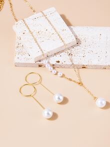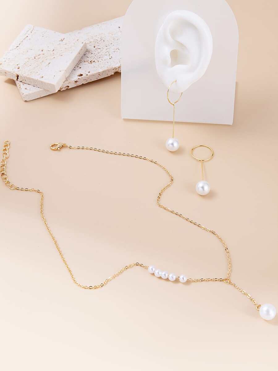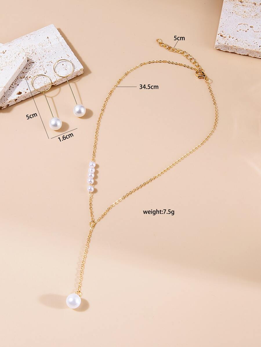 3pcs Faux Pearl Decor Jewelry Set