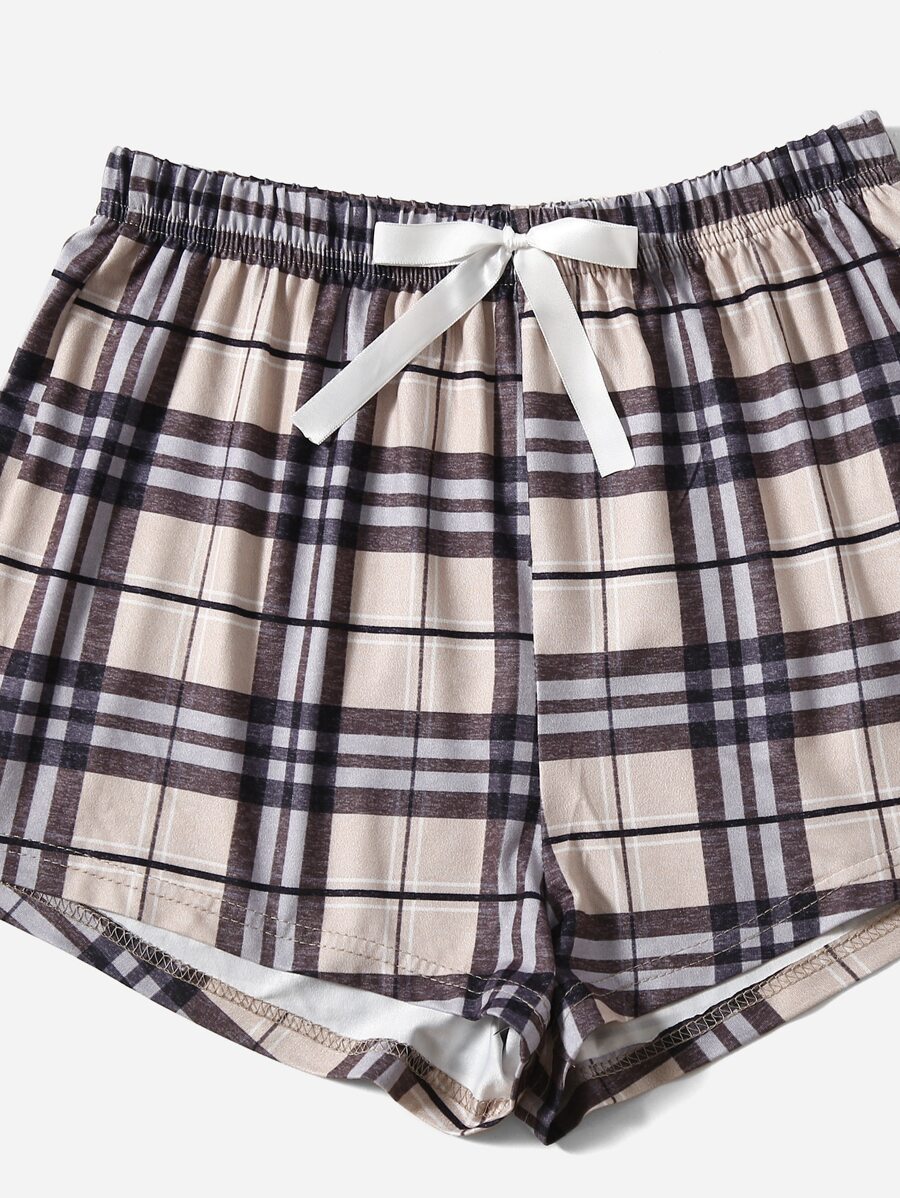 3pcs Plaid Knot Front Cami PJ Set / Pajama Set