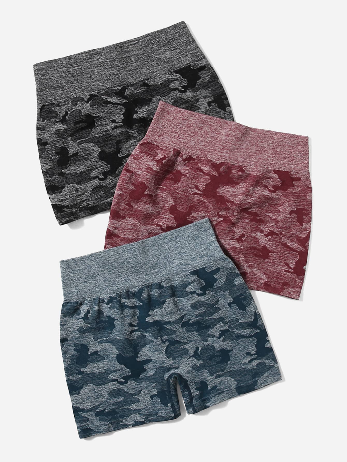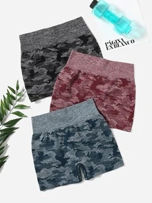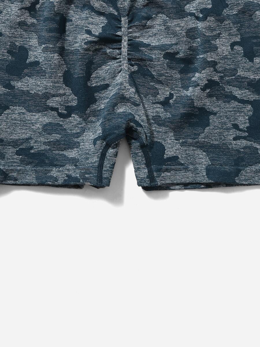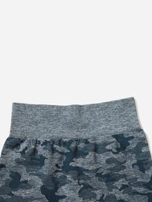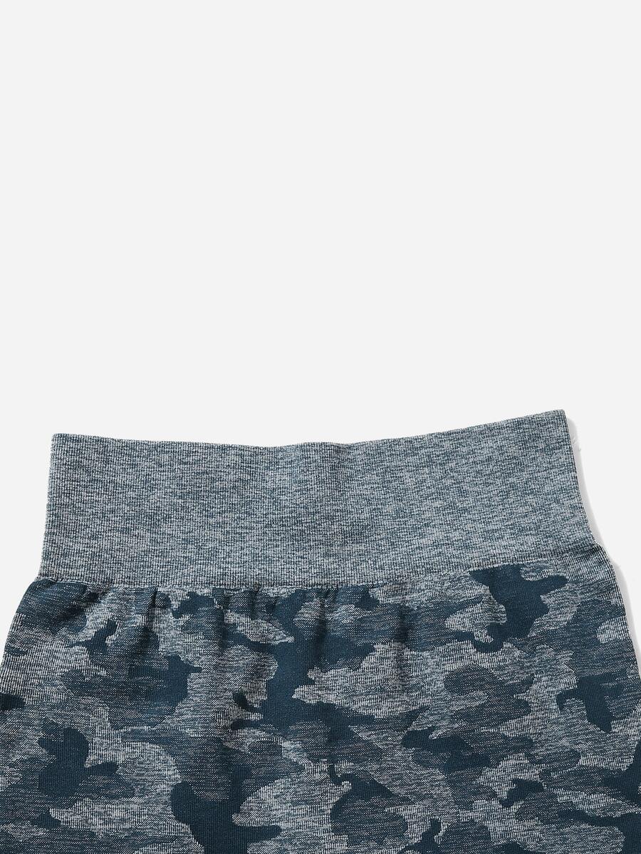 3pcs Seamless Camo Print Wide Waistband Sports Shorts