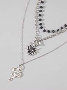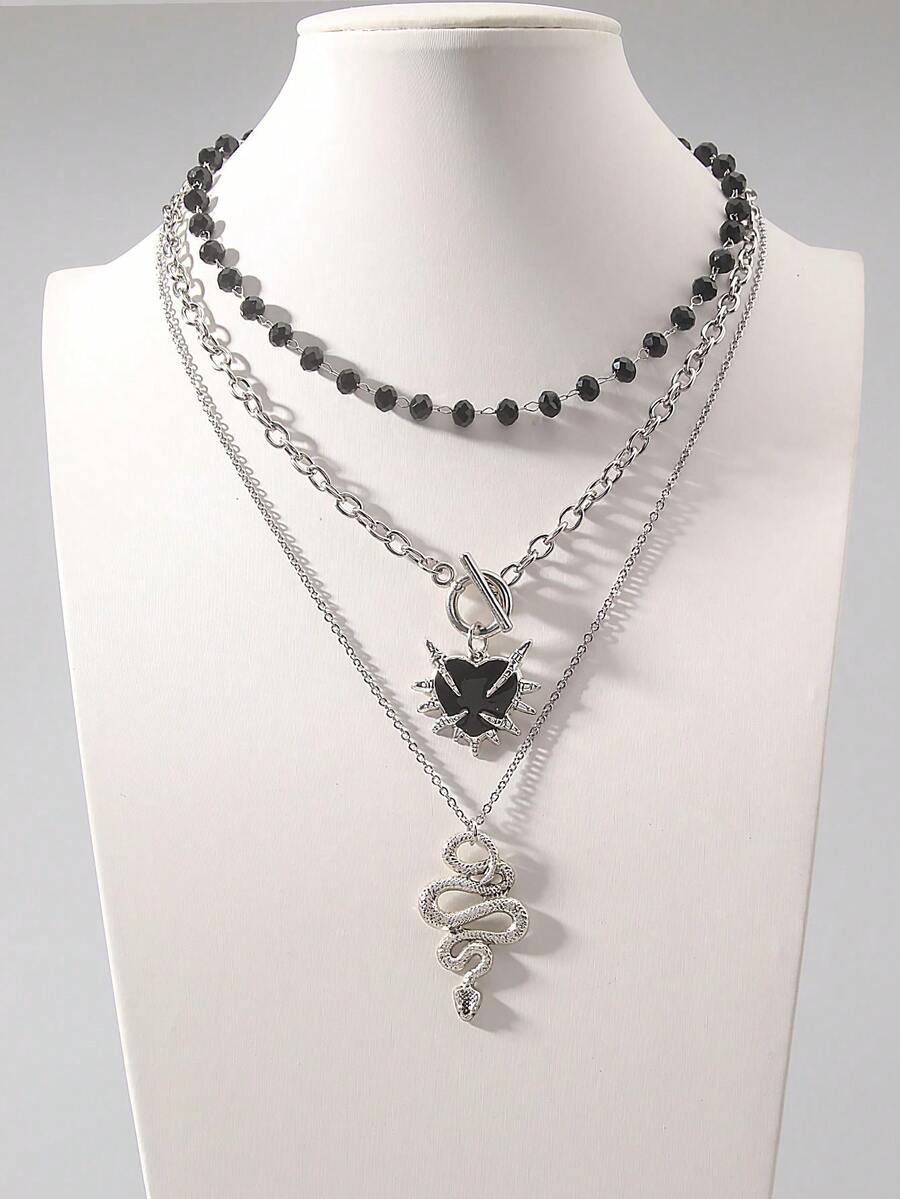3pcs/Set Gothic Dark Personalized Glass Crystal Black Beaded Vintage Hip Hop Thorns Cross Pendant Necklace, Suitable For Women & Men Daily Wear, Halloween