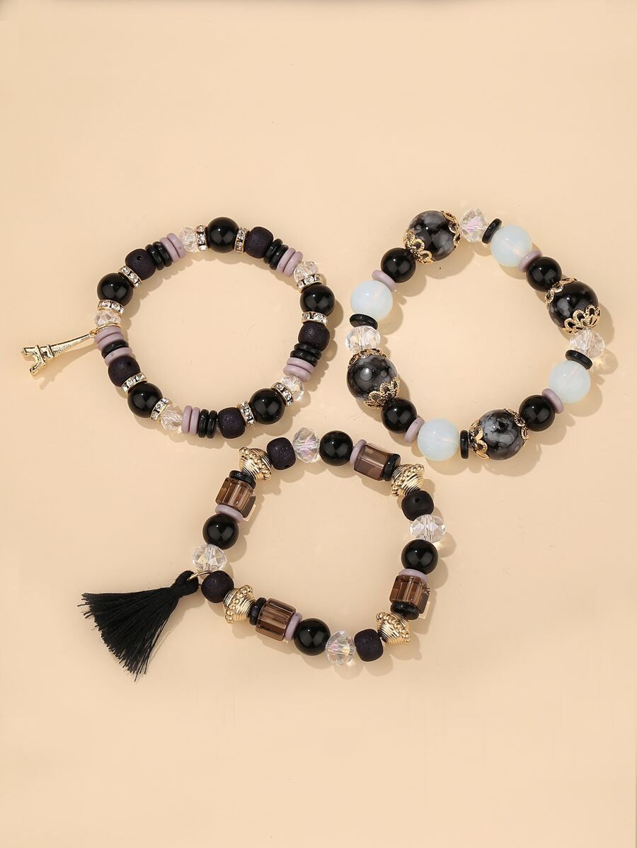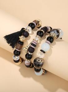 3pcs Tassel Decor Beaded Bracelet