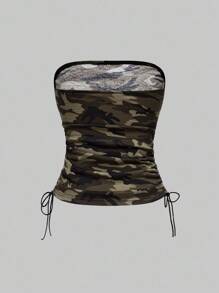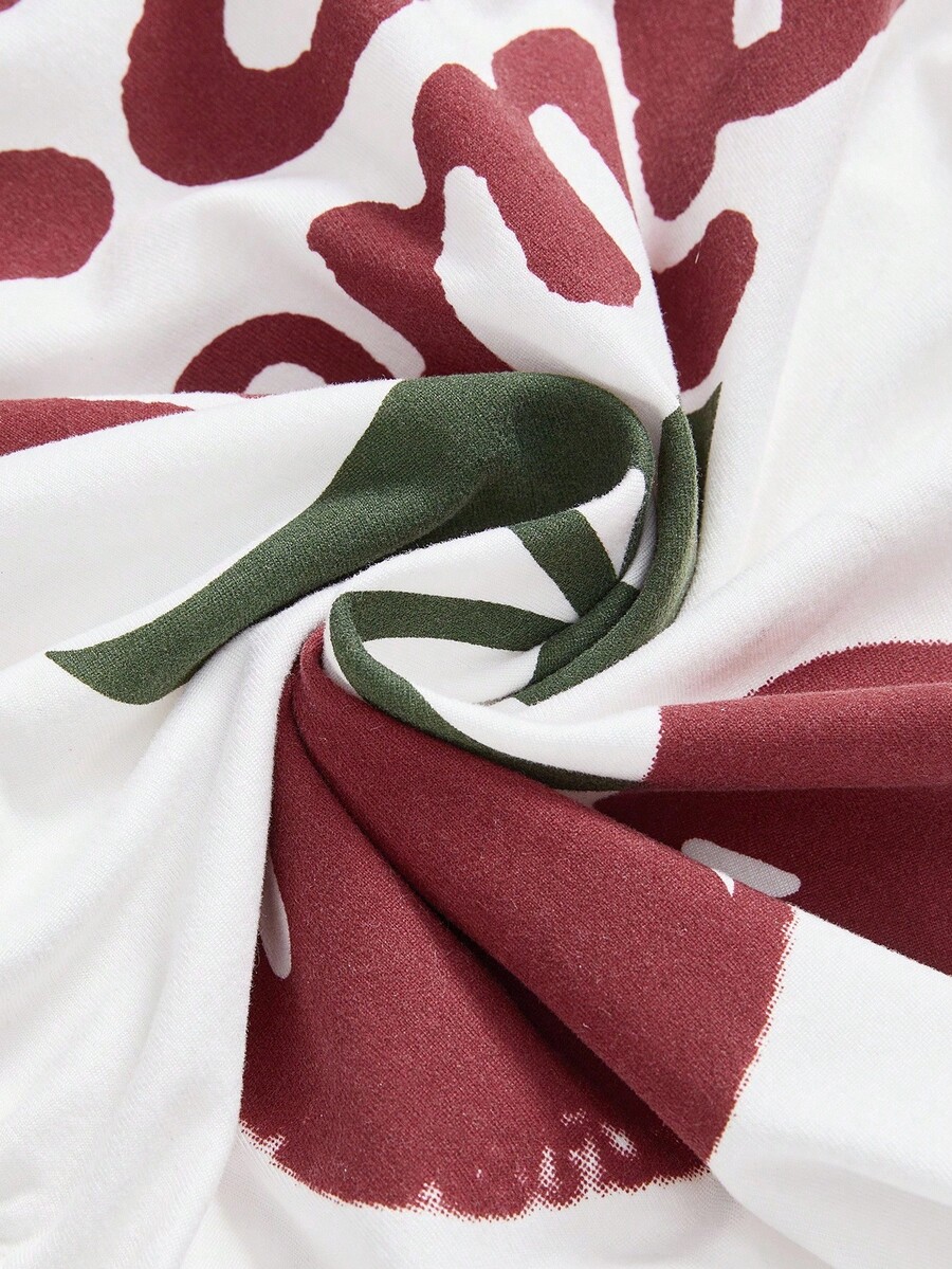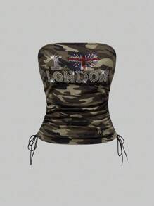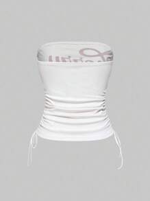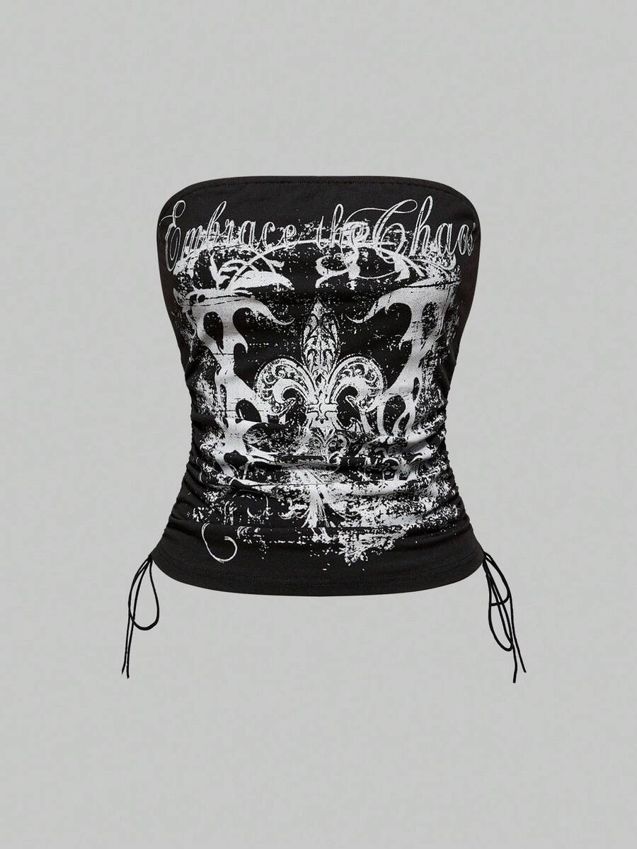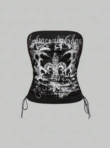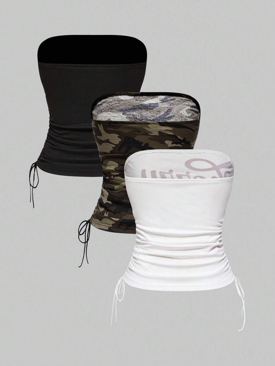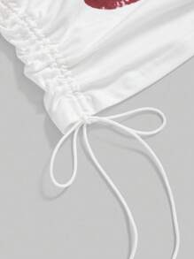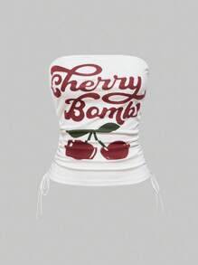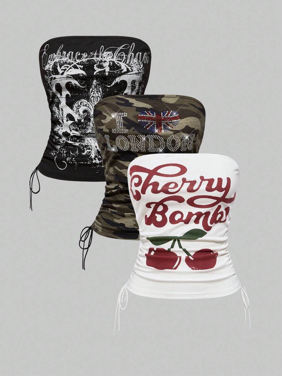 3pcs Y2K Babe Slogan Rhinestone & Cherry Cross Print Cropped Camisole Top With Drawstring Waist
