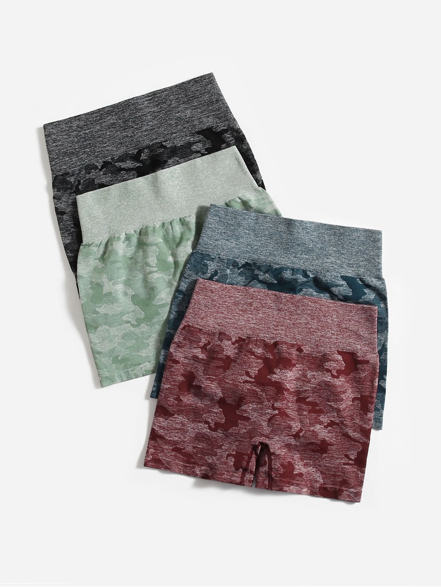 4Packs Seamless Camo Print Sports Shorts Spandex Shorts