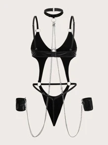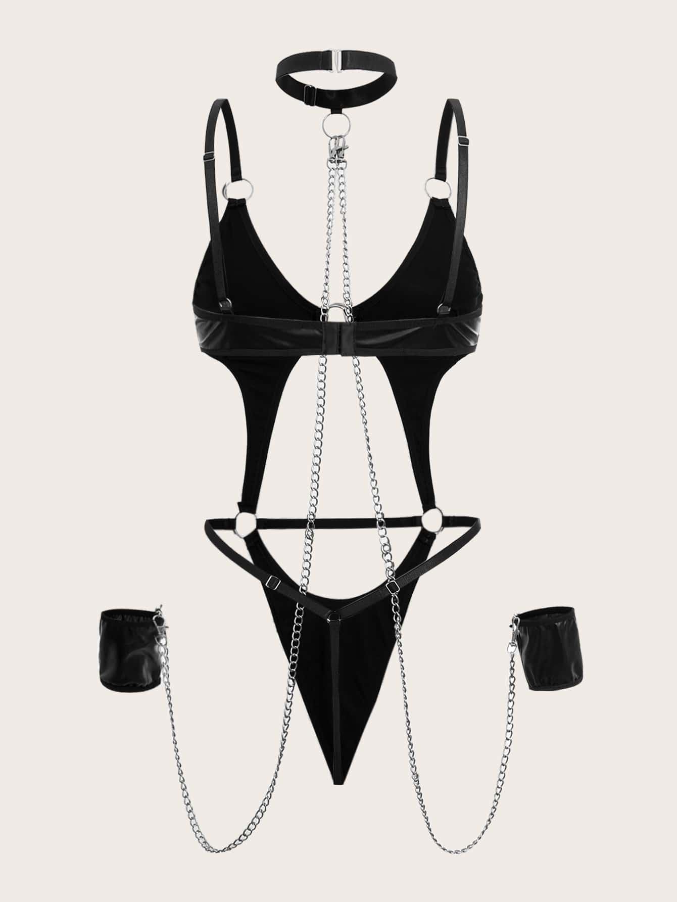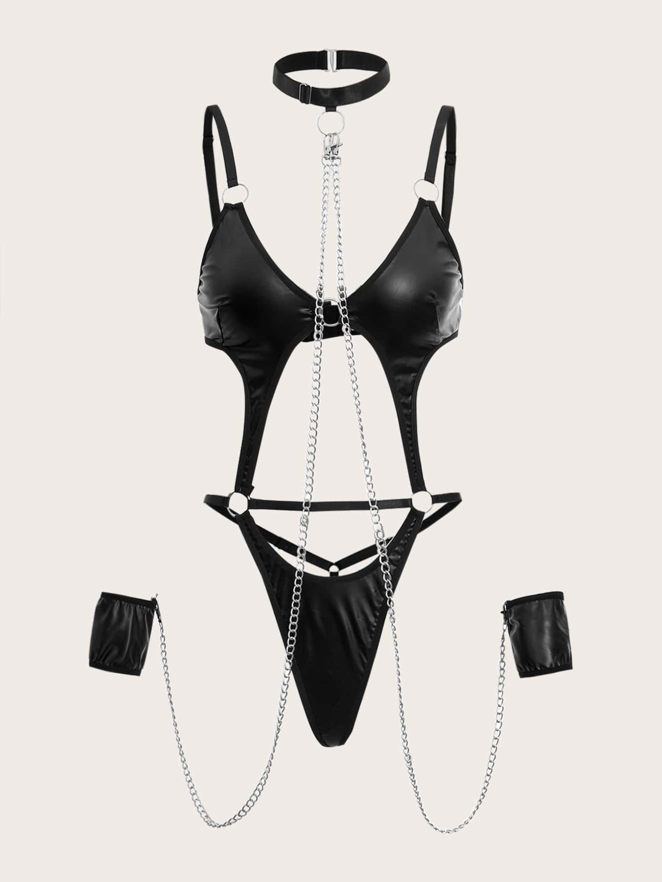 4pack Cut Out Chain Ring Linked Teddy Bodysuit
