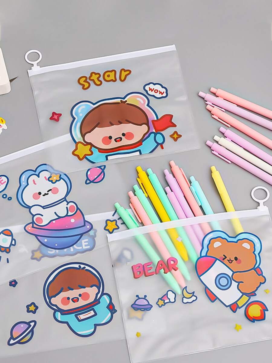 4pcs Cartoon Graphic Random Waterproof File Bag