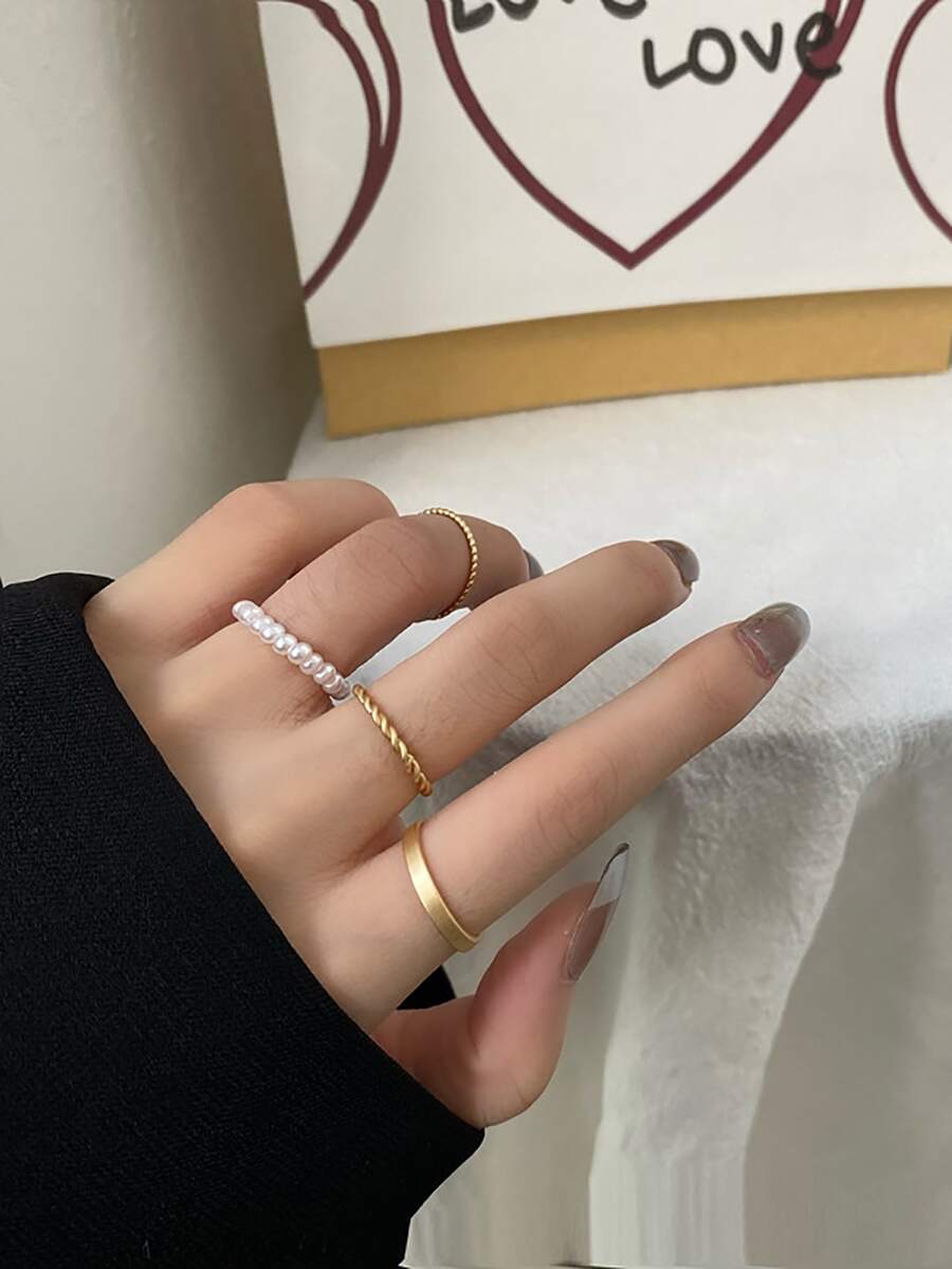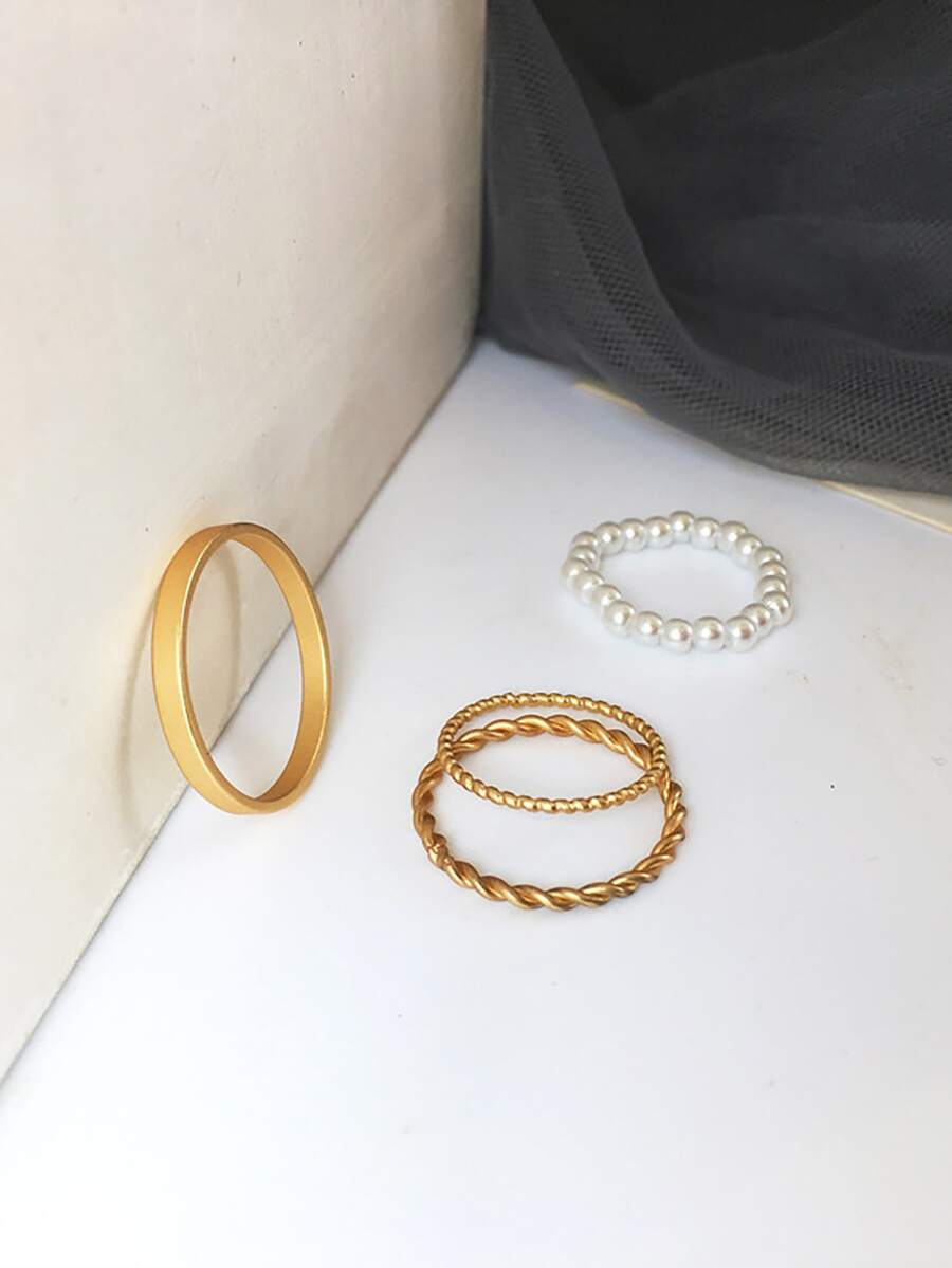 4pcs Faux Pearl Decor Ring