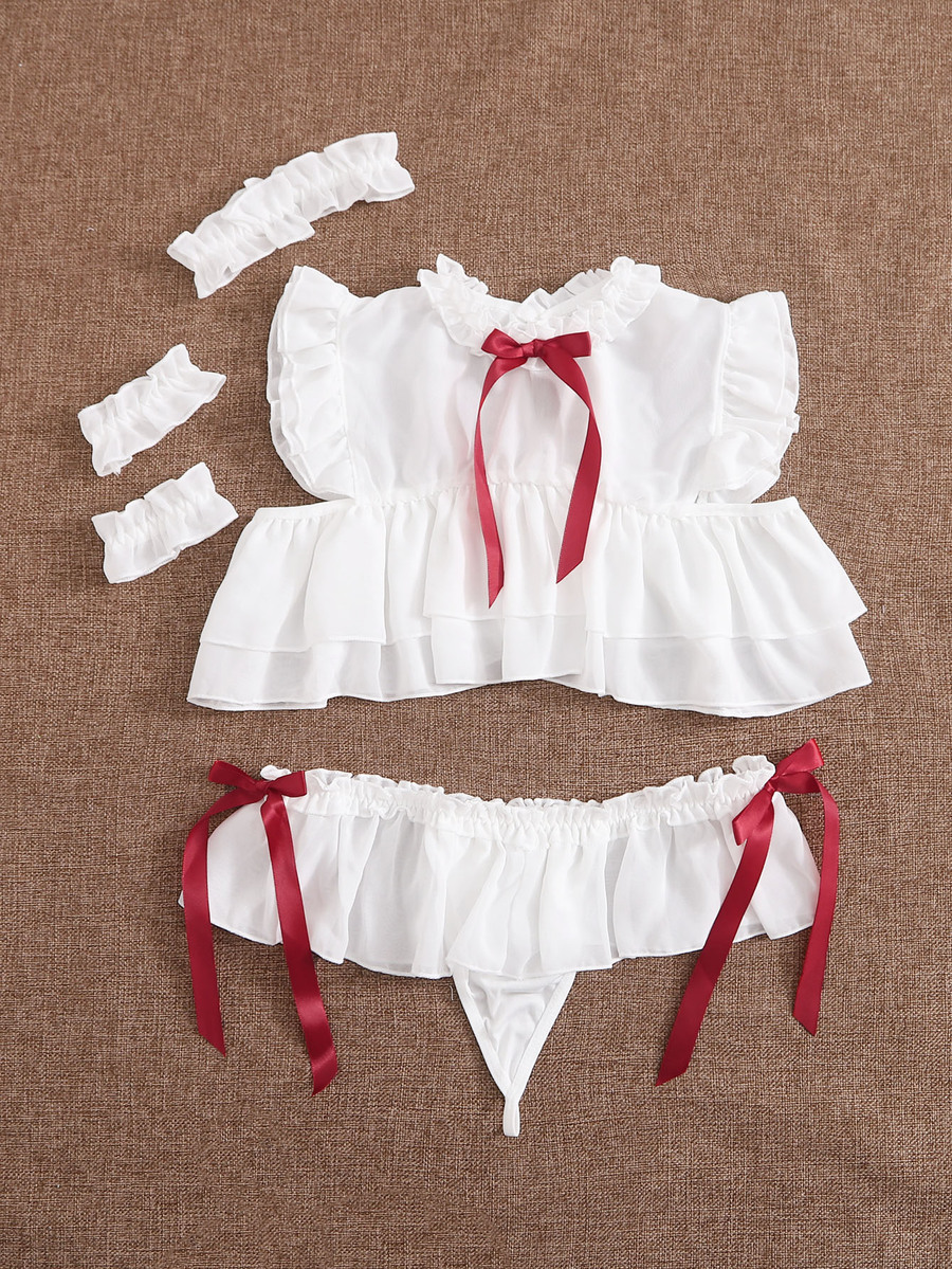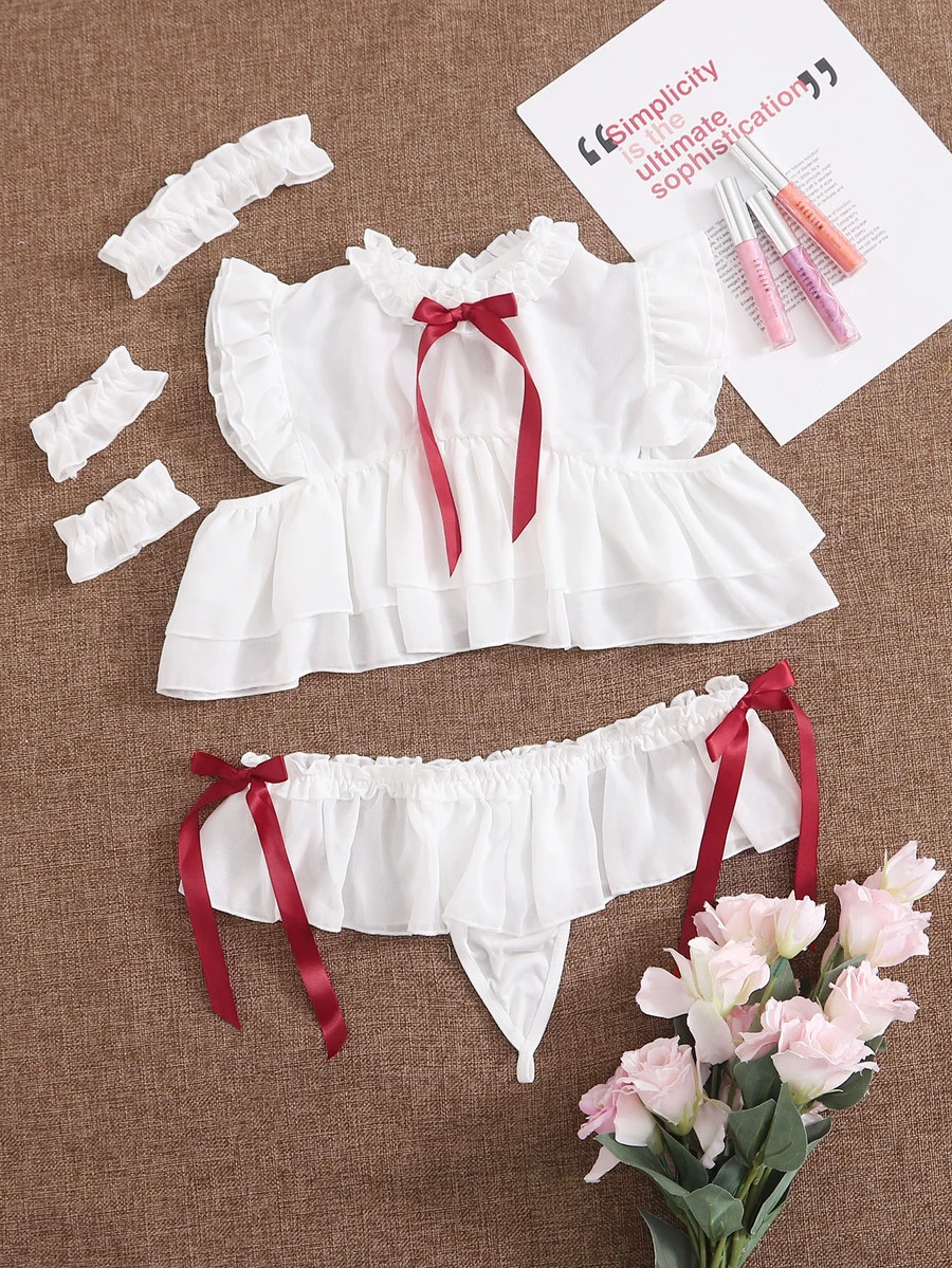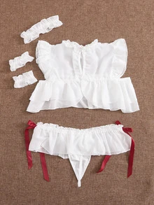 5pack Ruffle Hem Sexy Set & Choker & Cuffs
