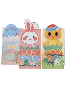6pcs Random Easter Style Oil-Proof Disposable Square Bottom Food Packaging Paper Bag, For Restaurant And Bakery