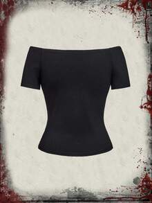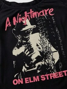 A Nightmare on Elm Street X ROMWE Women's Kpop Off Shoulder Letter & Figure Graphic Tight Fit Short Sleeve T-Shirt