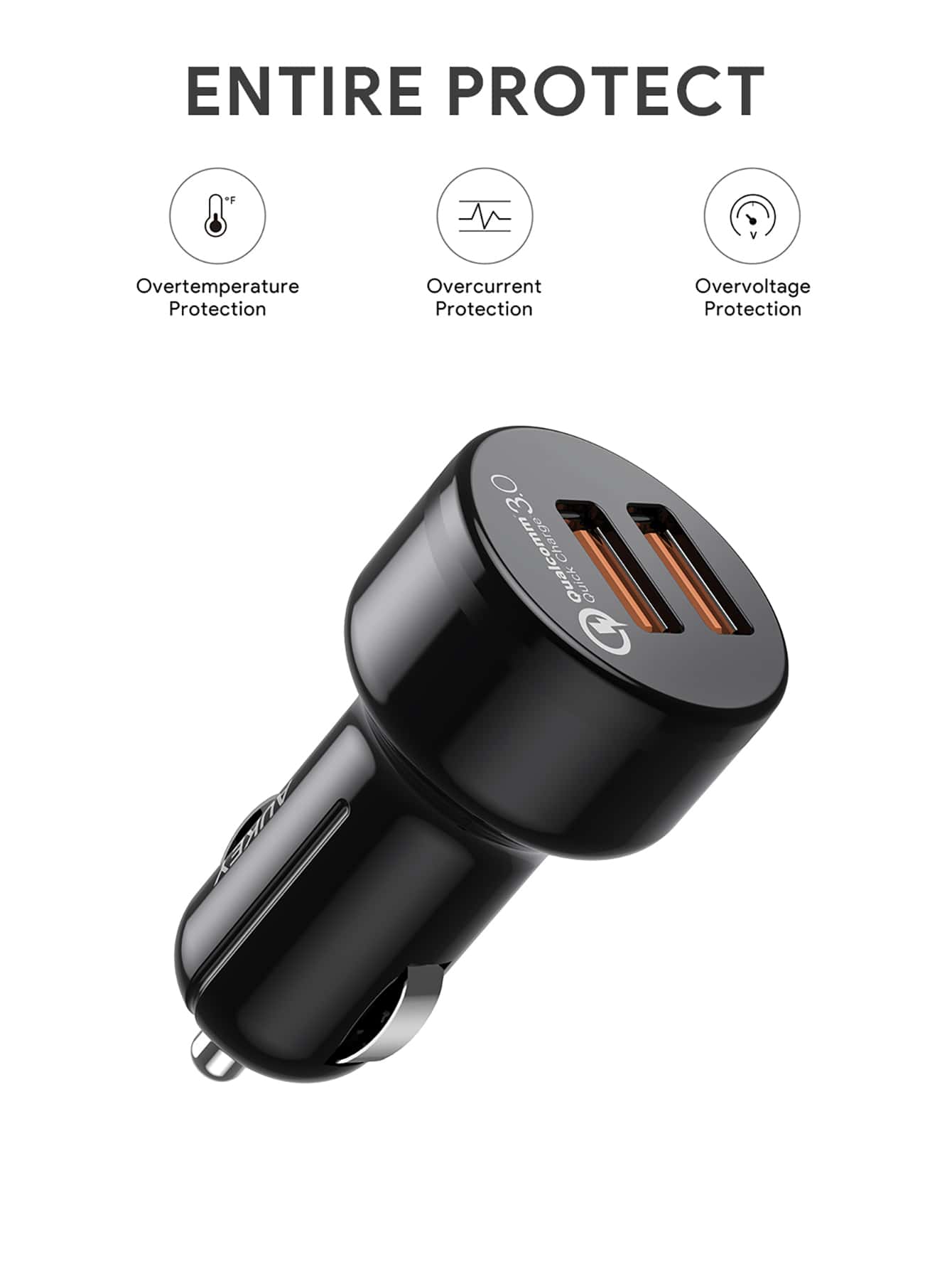AUKEY Quick Charge 3.0 18W Dual USB Car Charger