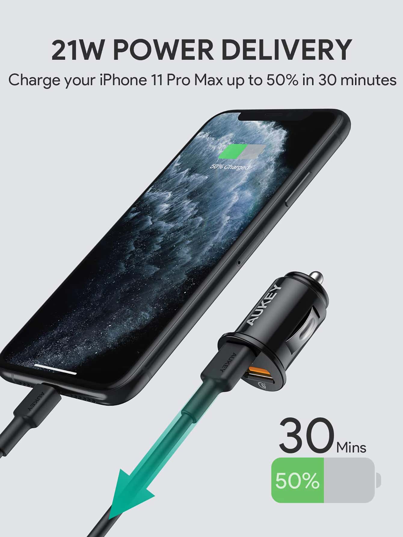 AUKEY USB C Car Charger, 2-Port Fast Car Charger with 18W Power Delivery