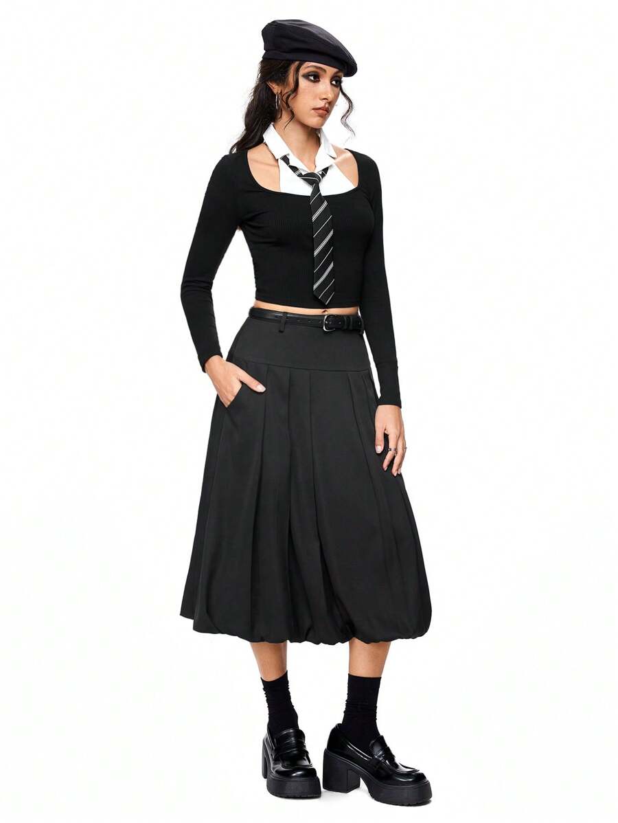 Academia College Girl Core Women's Low Waist Pleated Skirt With Floral Hem Design, School