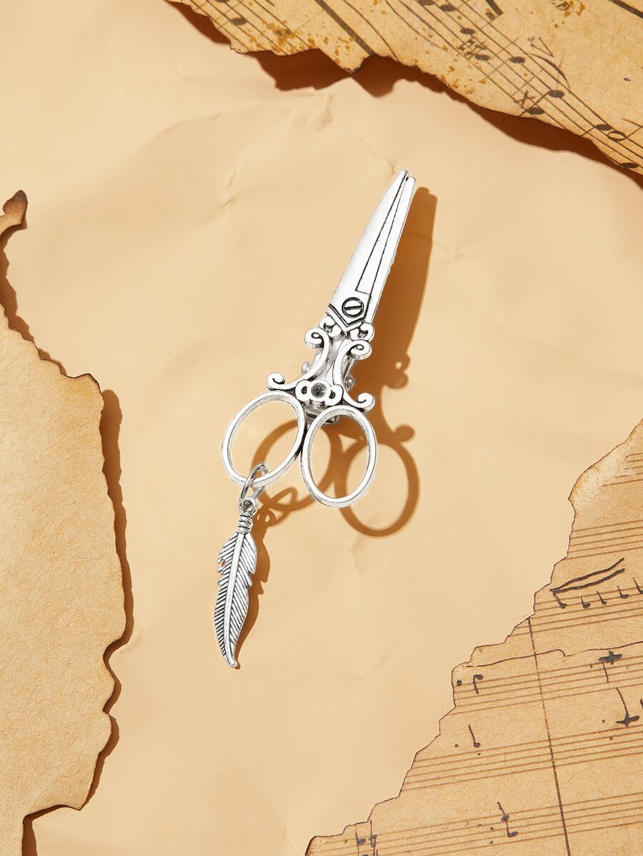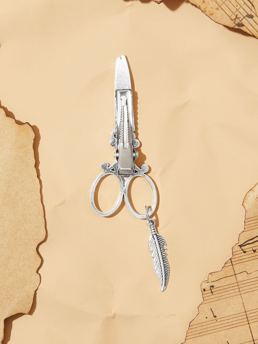 Academia Feather Charm Scissors Design Alligator Hair Clip