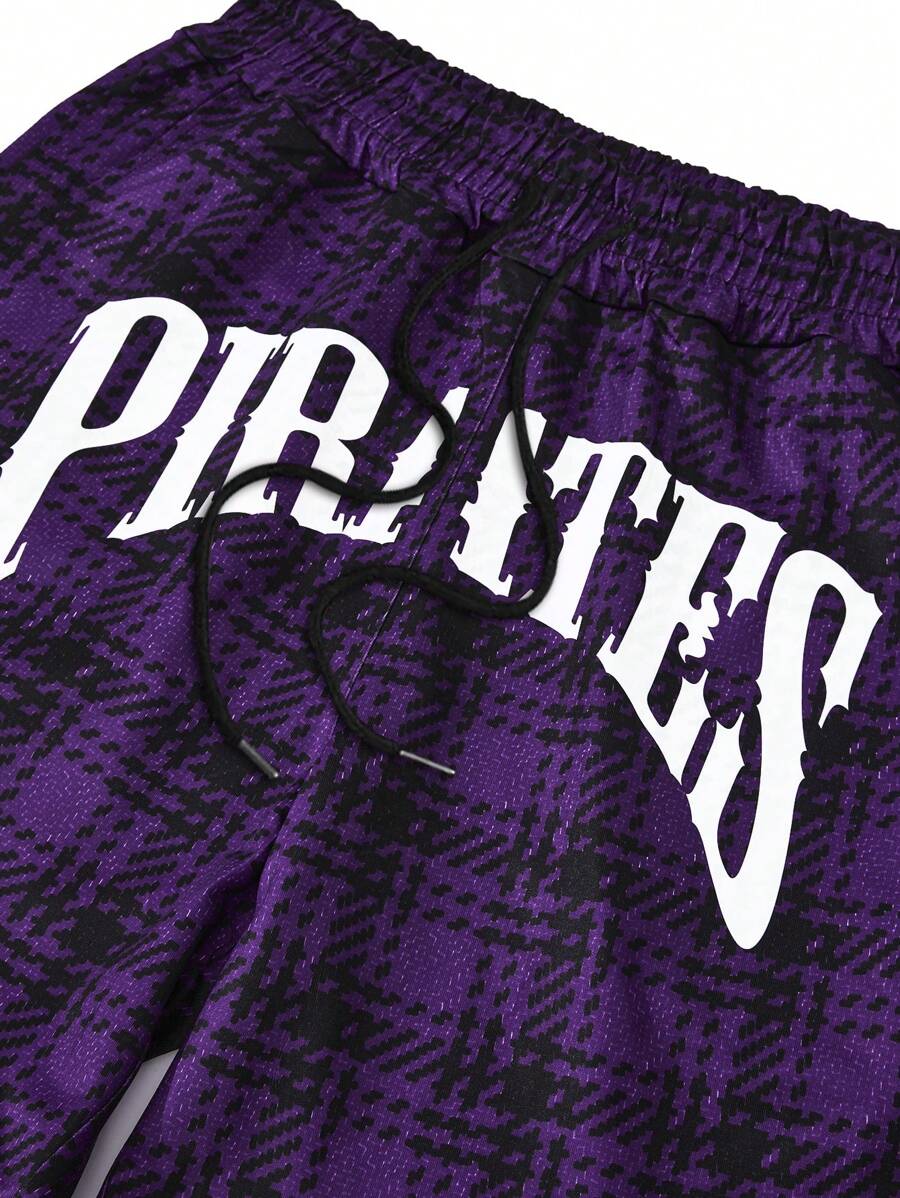 Academia Men Plaid Letter Graphic Drawstring Waist Sweatpants, School