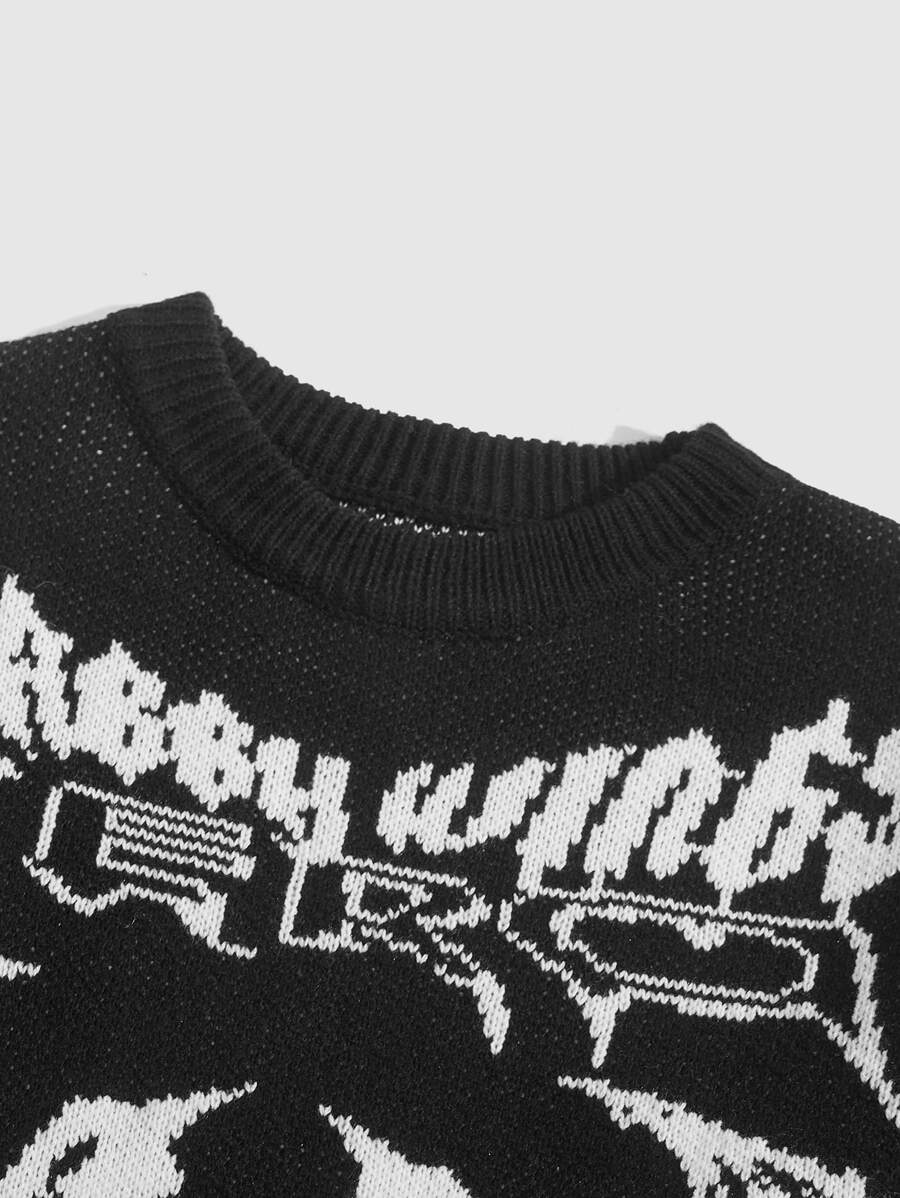 Academia Men Wing & Letter Pattern Sweater
