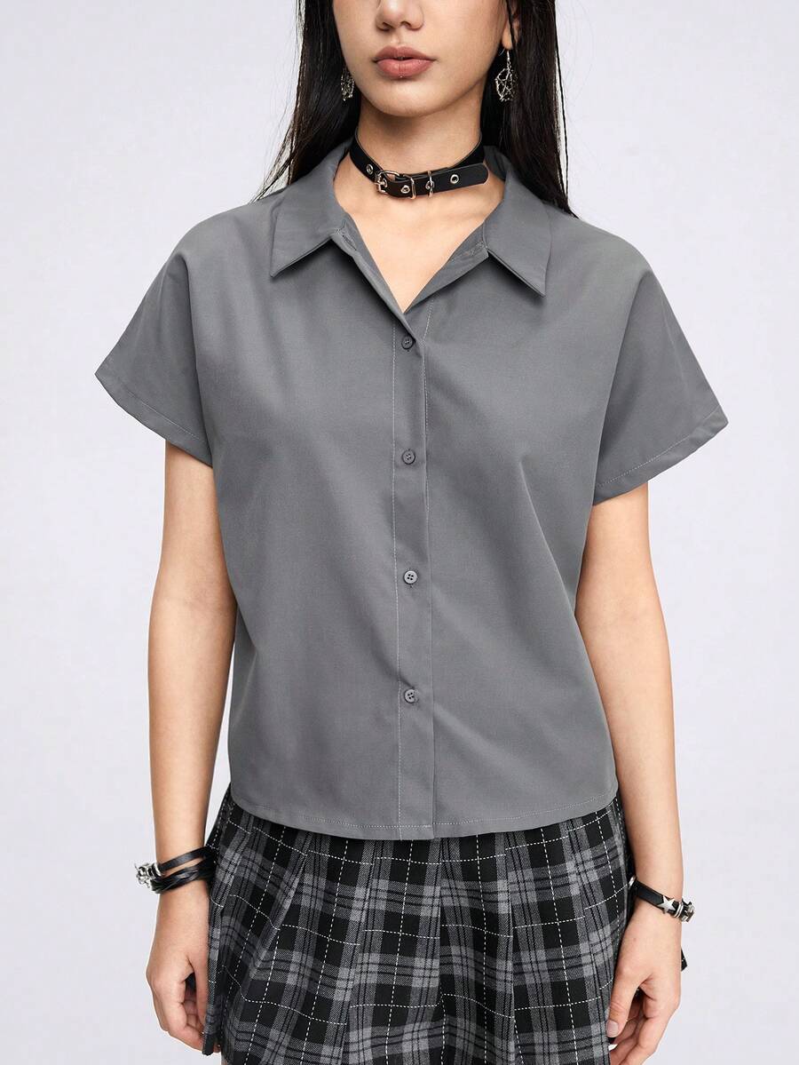 Academia Women's Preppy Plain Color Short Sleeve Summer Blouse, For School