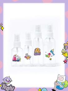 Adventure Time X ROMWE Cartoon Pattern PET Transparent 4pcs Set - Mini Spray Bottles For Cosmetics, Perfume