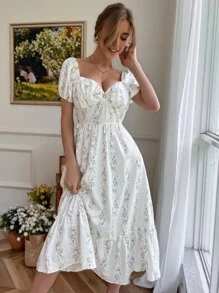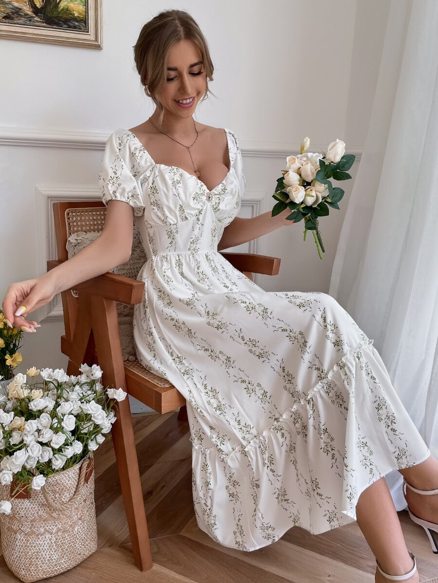 Allover Floral Sweetheart Neck Dress