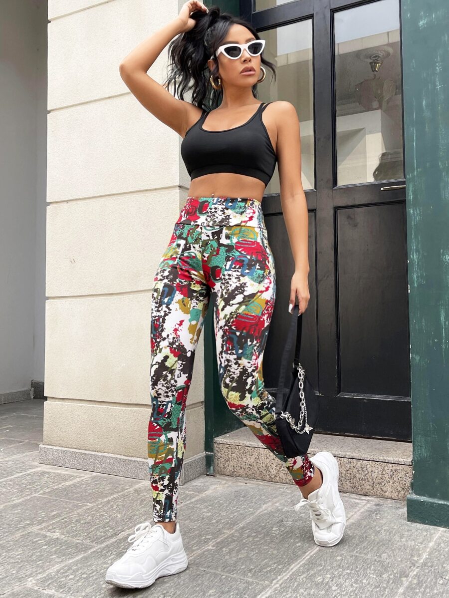 Allover Print High Waist Sports Leggings Yoga Women Pants