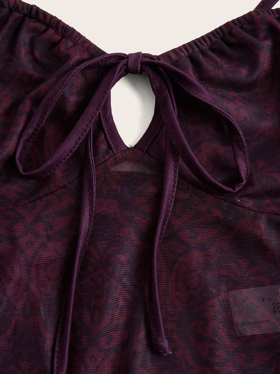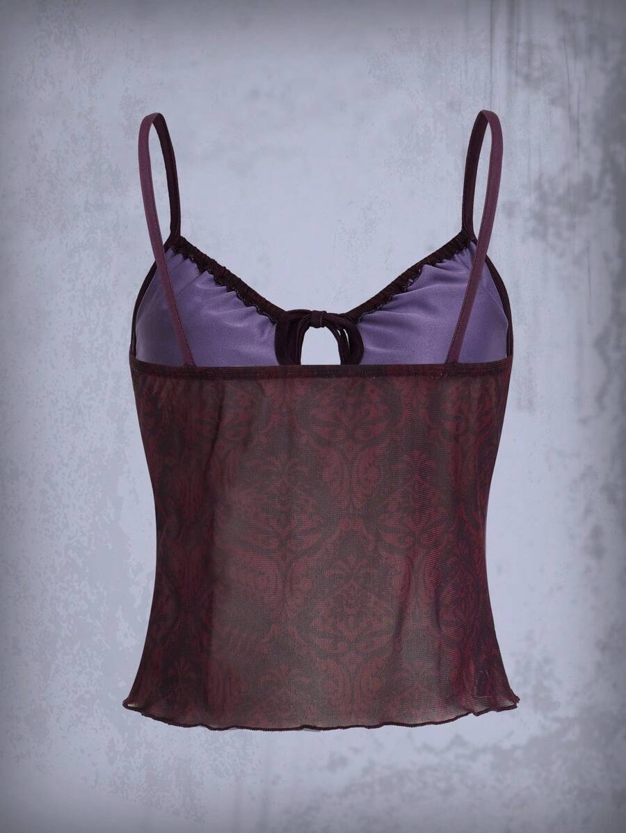 Allover Print Tie Front Cami Top