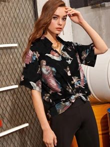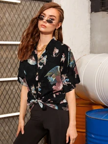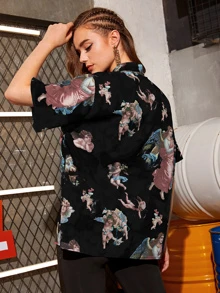 Angel Print Button Front Shirt
