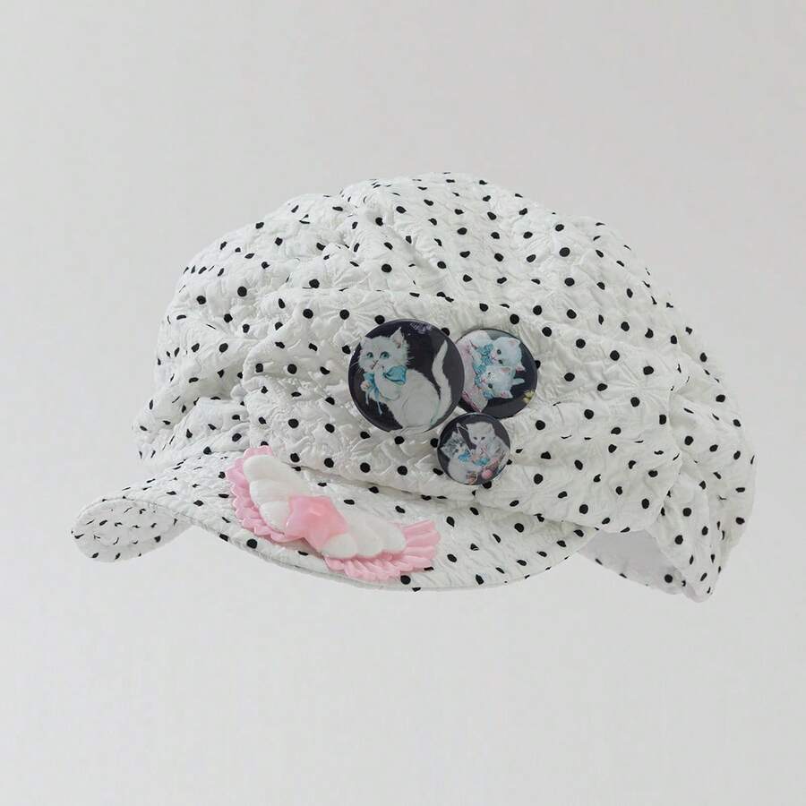 Anime 1 Lady Cat Badge Angel Wings Star Polka Dot Newsboy Hat