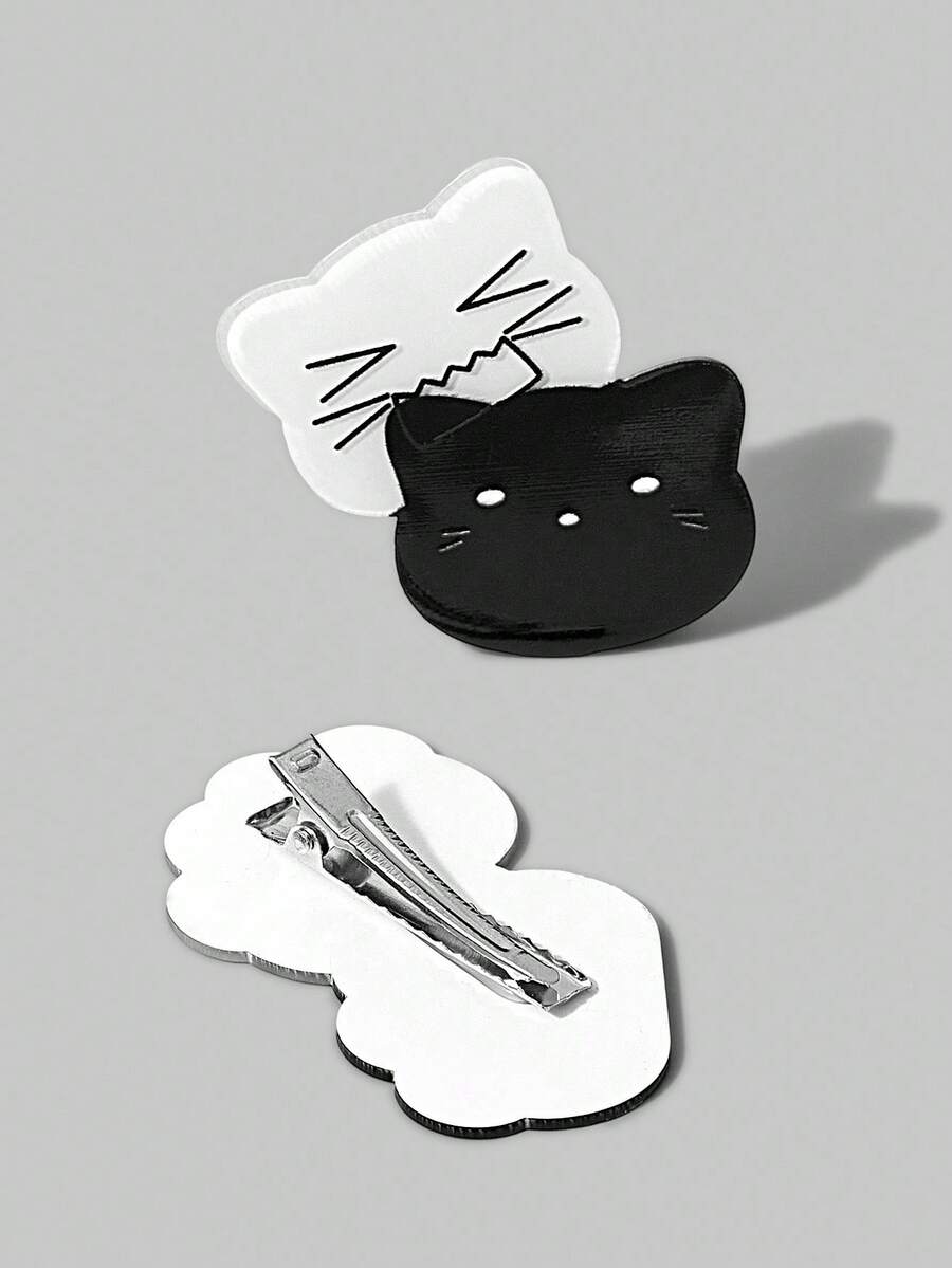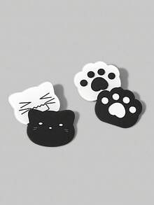 Anime 1 Pair Cute Black & White Cat Face And Paw Print Cartoon Hair Clips, Decorative Side Bangs Hairpins For Girls