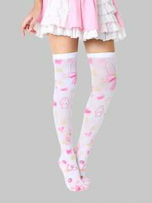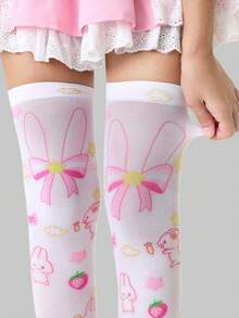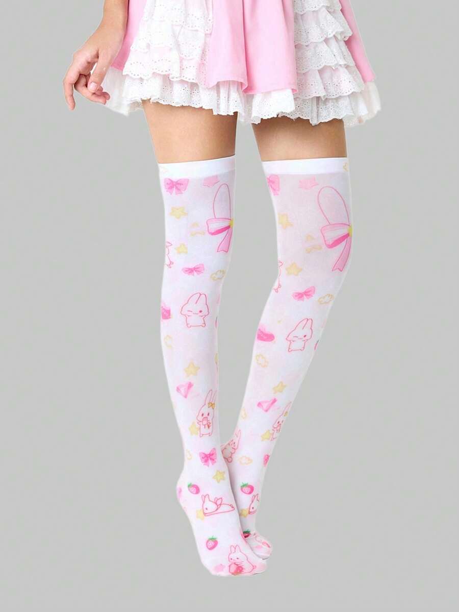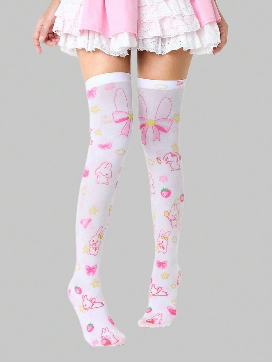 Anime 1 Pair Cute Cartoon Pattern Over-The-Knee Socks, Sweet School Style Bow, Rabbit, Strawberry, Star Element JK Thigh High Socks, Super Thin Elastic Sheer Tights