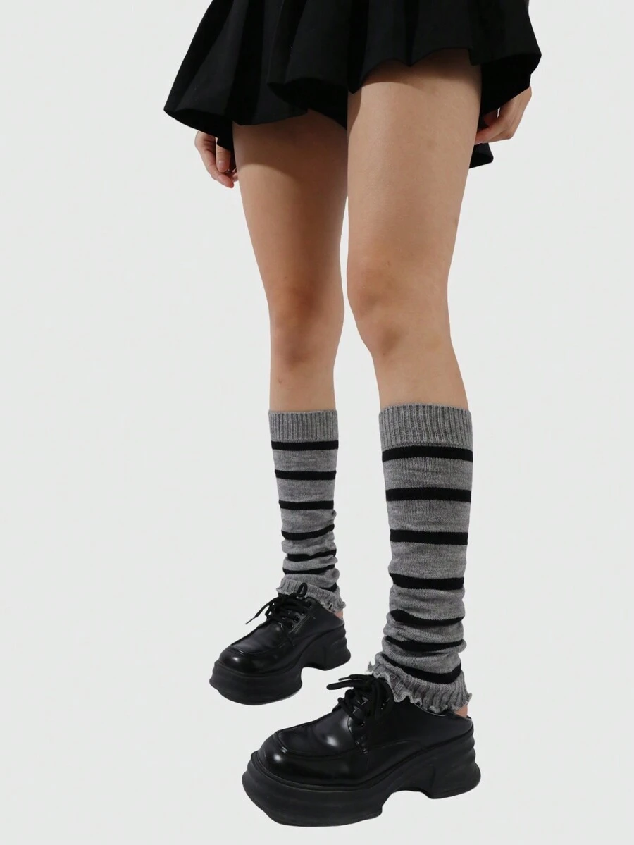 Anime 1 Pair Women Vintage Floral Lace Leg Warmers, Two-Tone Stripe, All Season