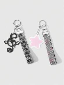 Anime 1 Y2k Sweet Cool Retro Personalized Fashion Unique Colorful College Style Black/Pink Acrylic Polka Dots Fine Glitter Sequins Hollowed Out Double-Sided Stars Wings Sound Symbols Soft Pottery Rhinestones Full Of Diamonds Bright Piano Keys Nylon Wrist Strap DIY Keychain Bag Pendant Pendant, Suitable For Girlfriends, Sisters, Ladies And Girls Daily Wear, Holiday Gifts