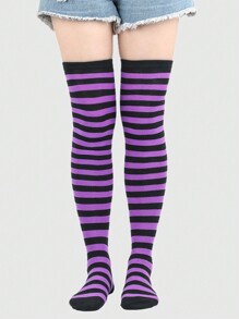 Anime 1pair Women Casual Striped Over-The-Knee Socks