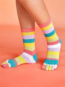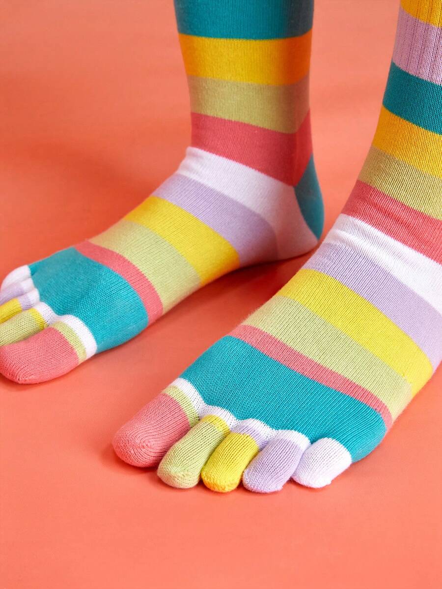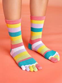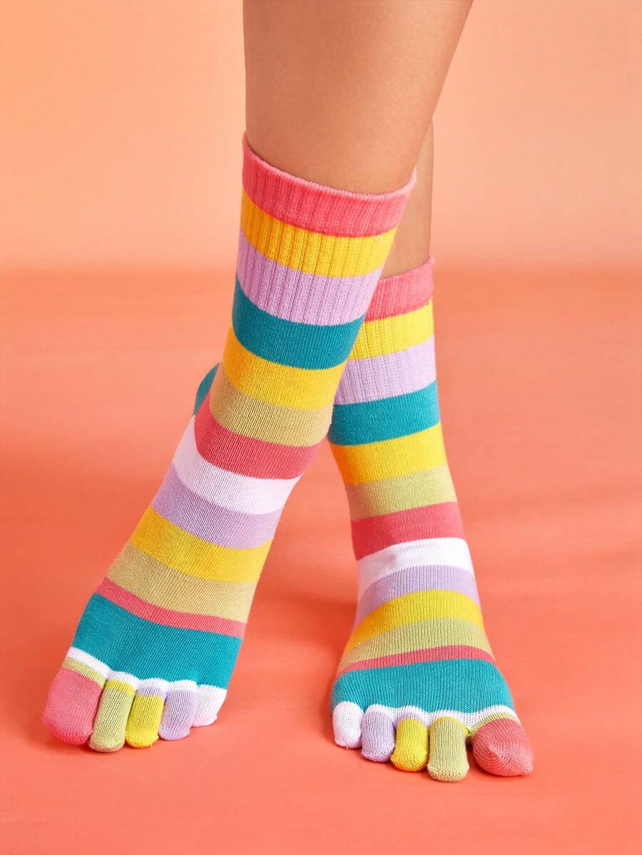 Anime 1pair Women Rainbow Casual Toe Socks